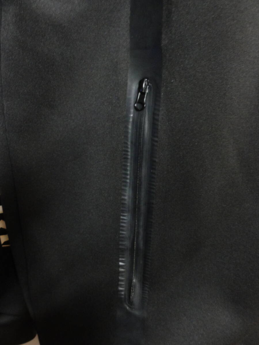 ②フロント部に2本のライン入りで、ライン部にロングジップ型ポケット付き