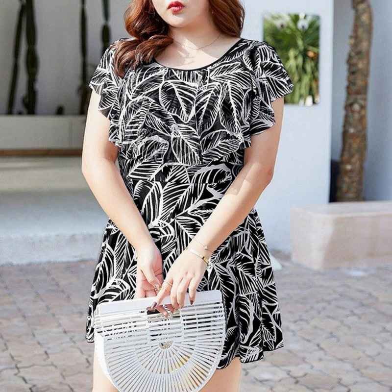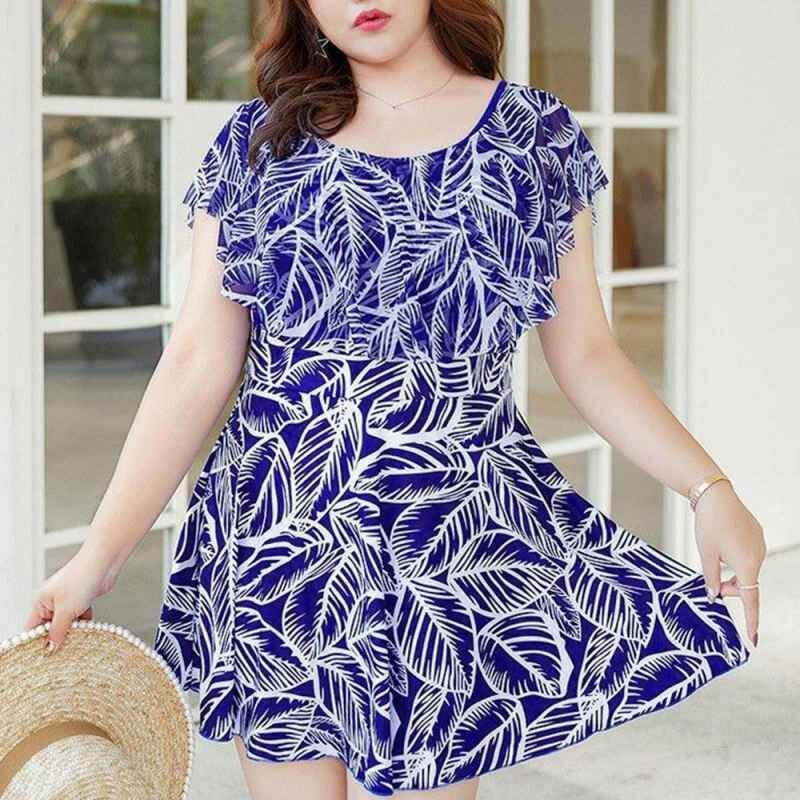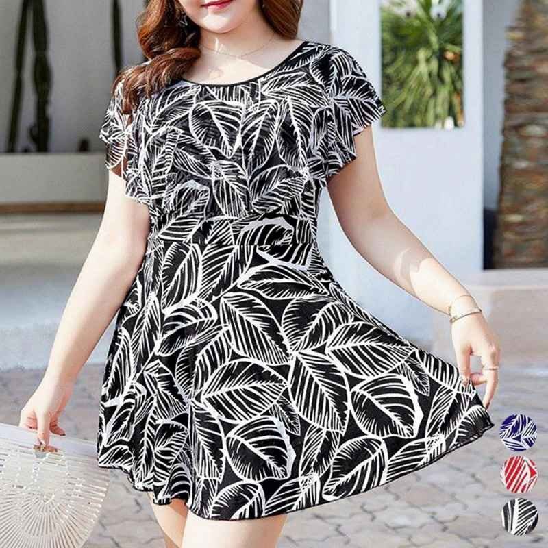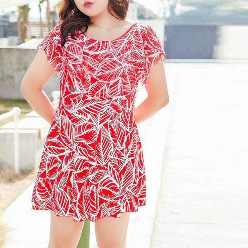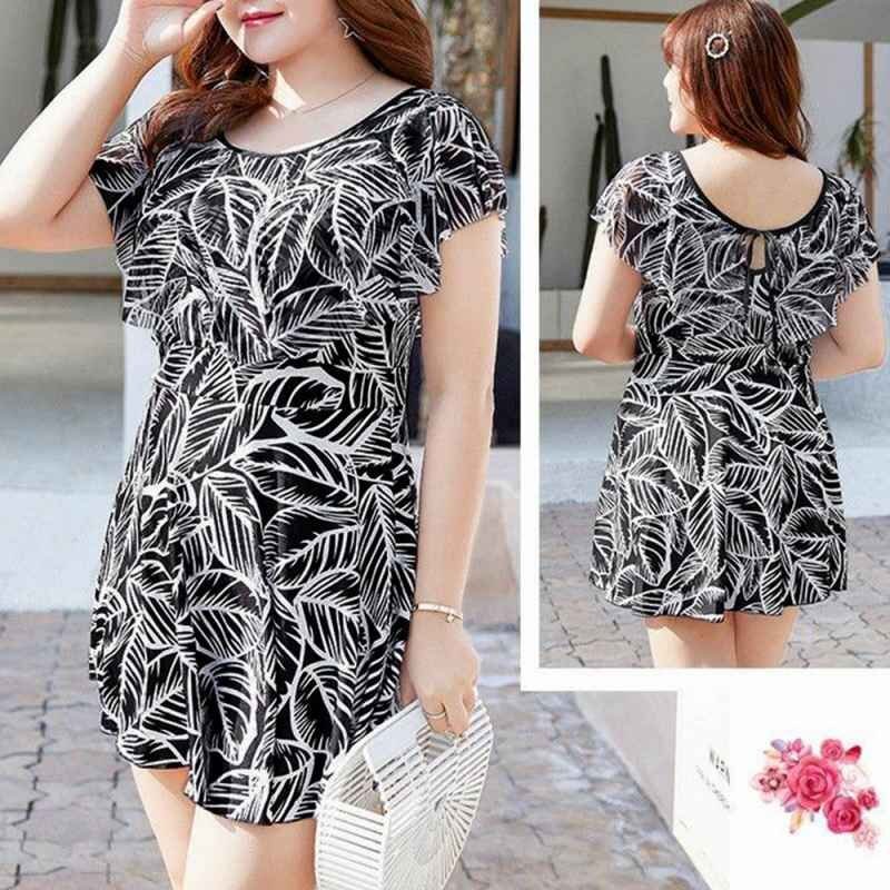 自然を感じさせる爽やかな印象の葉柄ショートパンツ一体型のワンピース水着です。