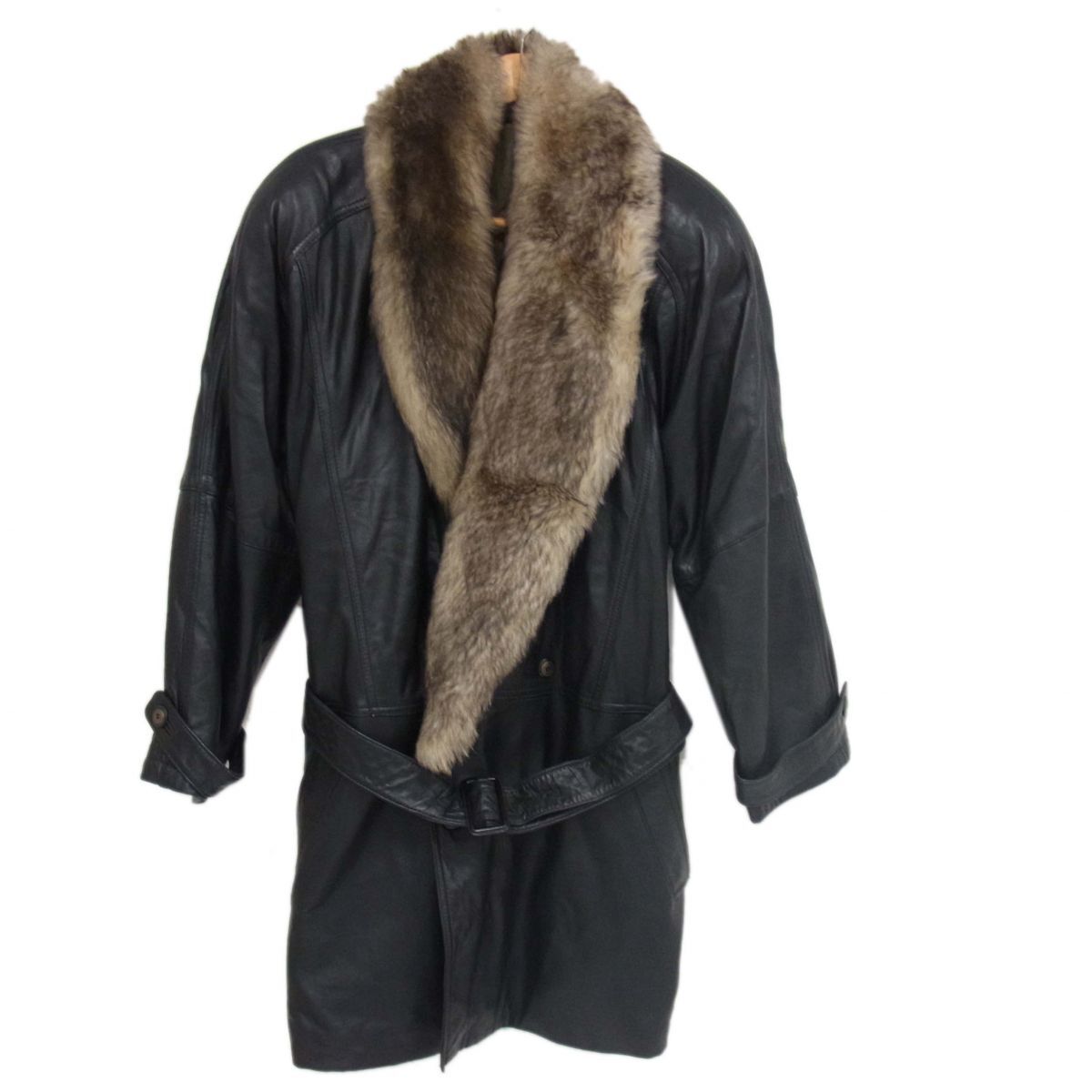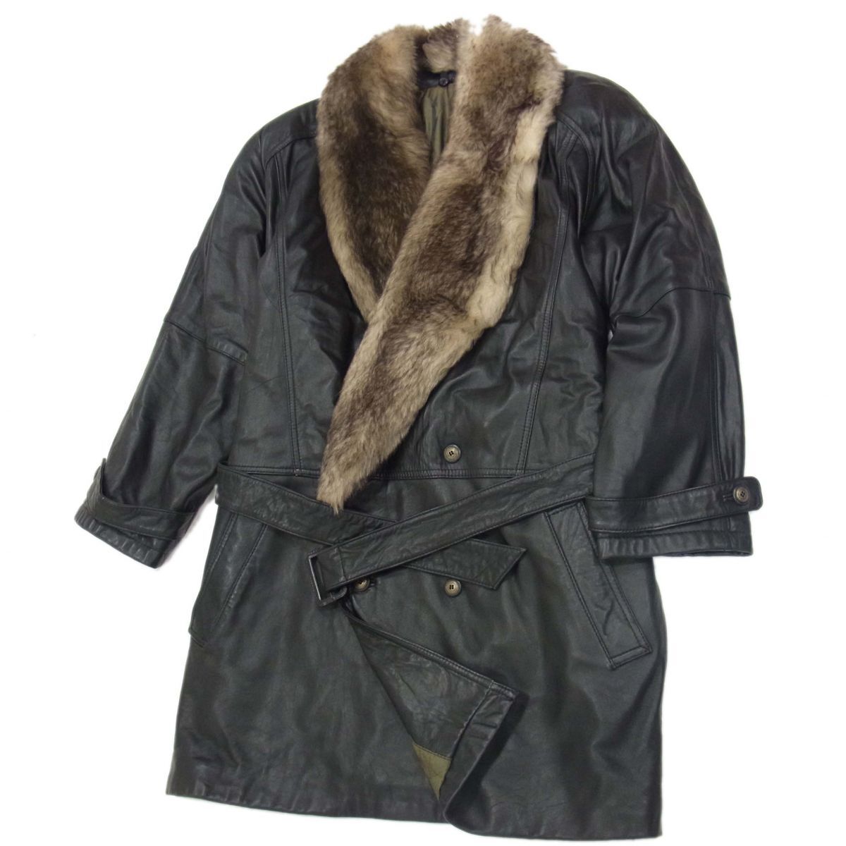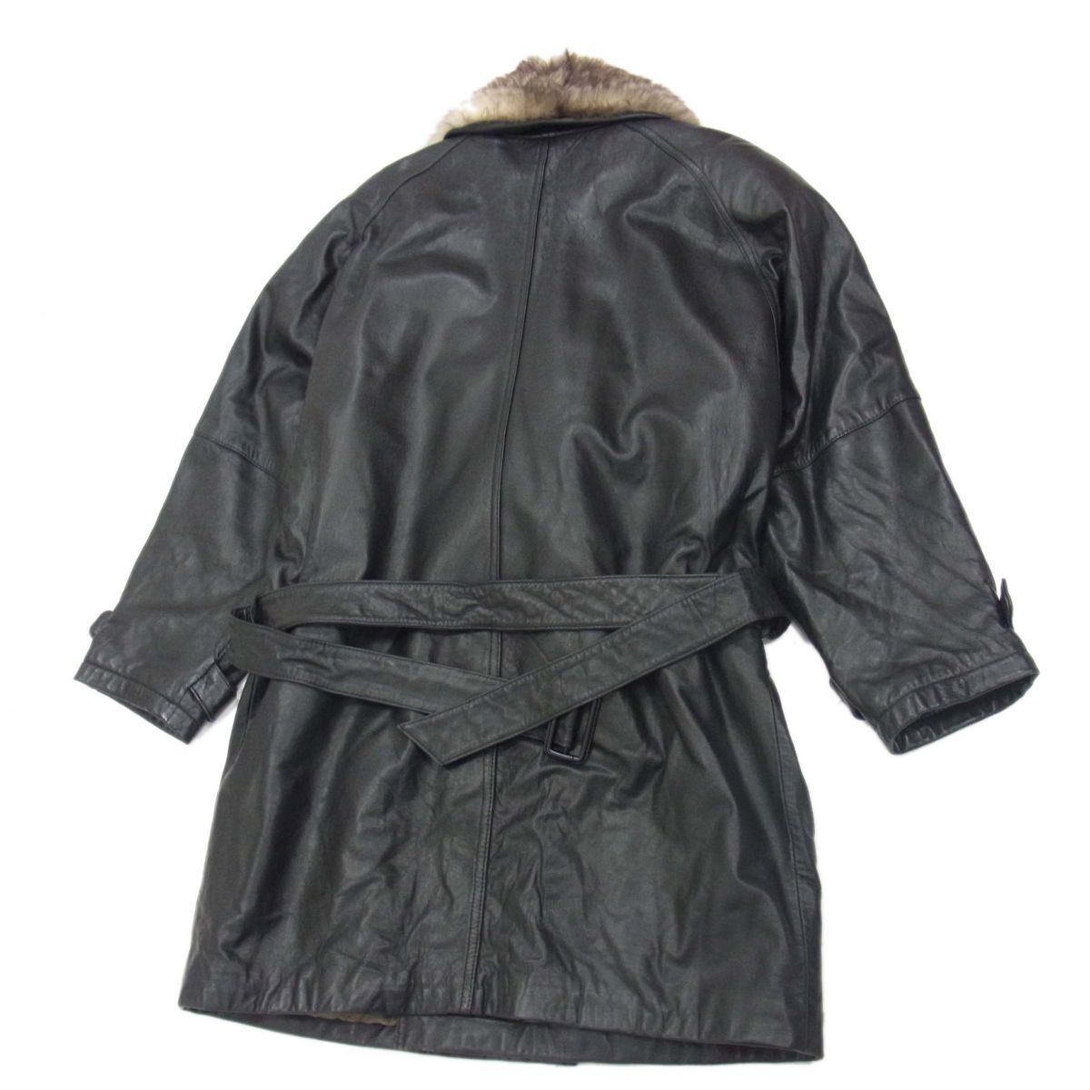 参考定価18万◇C.PELLE ITALY/VERA PELLE 襟ファー レザーコート 中綿入り ブラック ベルト付き シー・ペッレ イタリー/ベラペレ メンズ