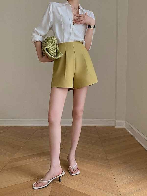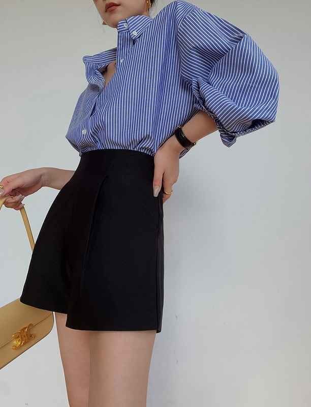全2色 ショートパンツ ショーパン 薄手 ハイウエスト 切り替え スリム 着痩せ 無地 シンプル S ブラック