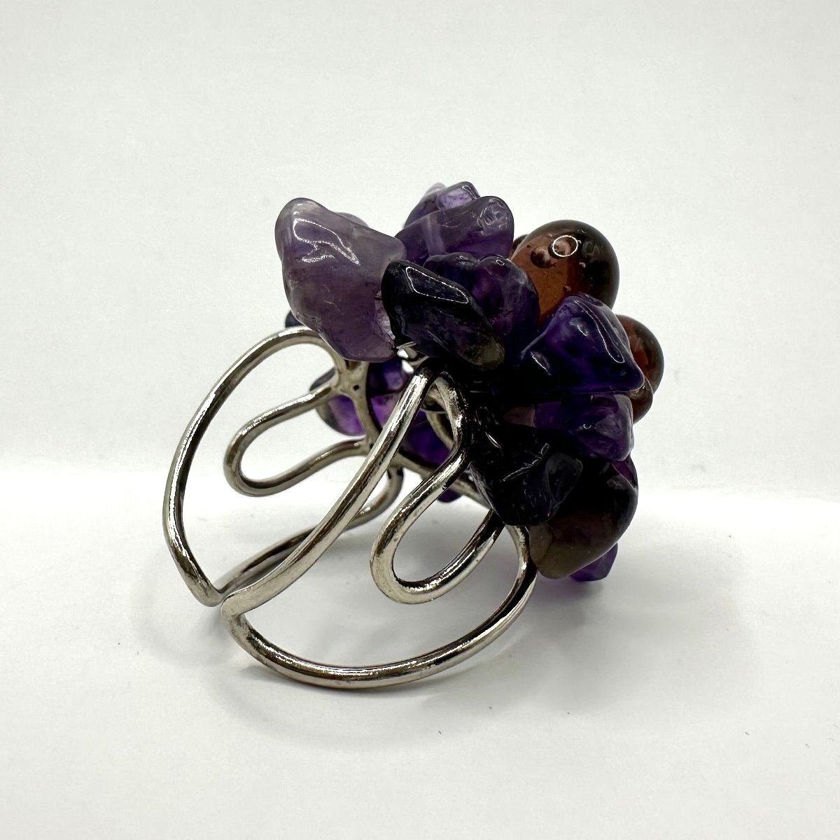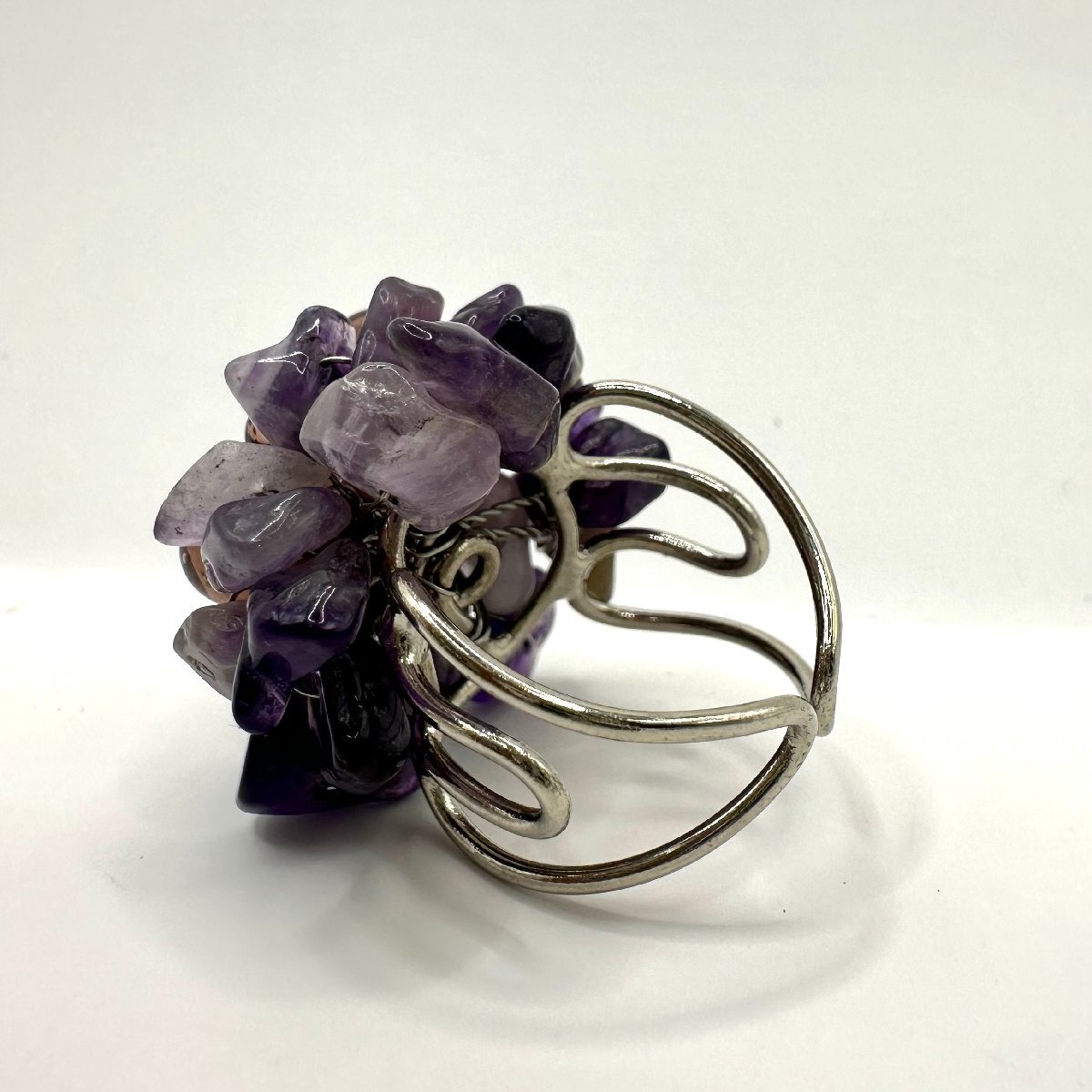 アメジストの美しさが、装いに華やかさや高級感をプラスしてくれるため、