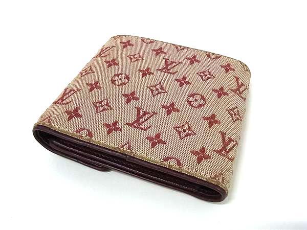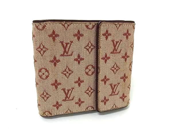 1円 LOUIS VUITTON ルイヴィトン M92241 モノグラムミニ ポルト ビエ カルト クレディ モネ 三つ折り 財布 ウォレット レッド系 GB1987