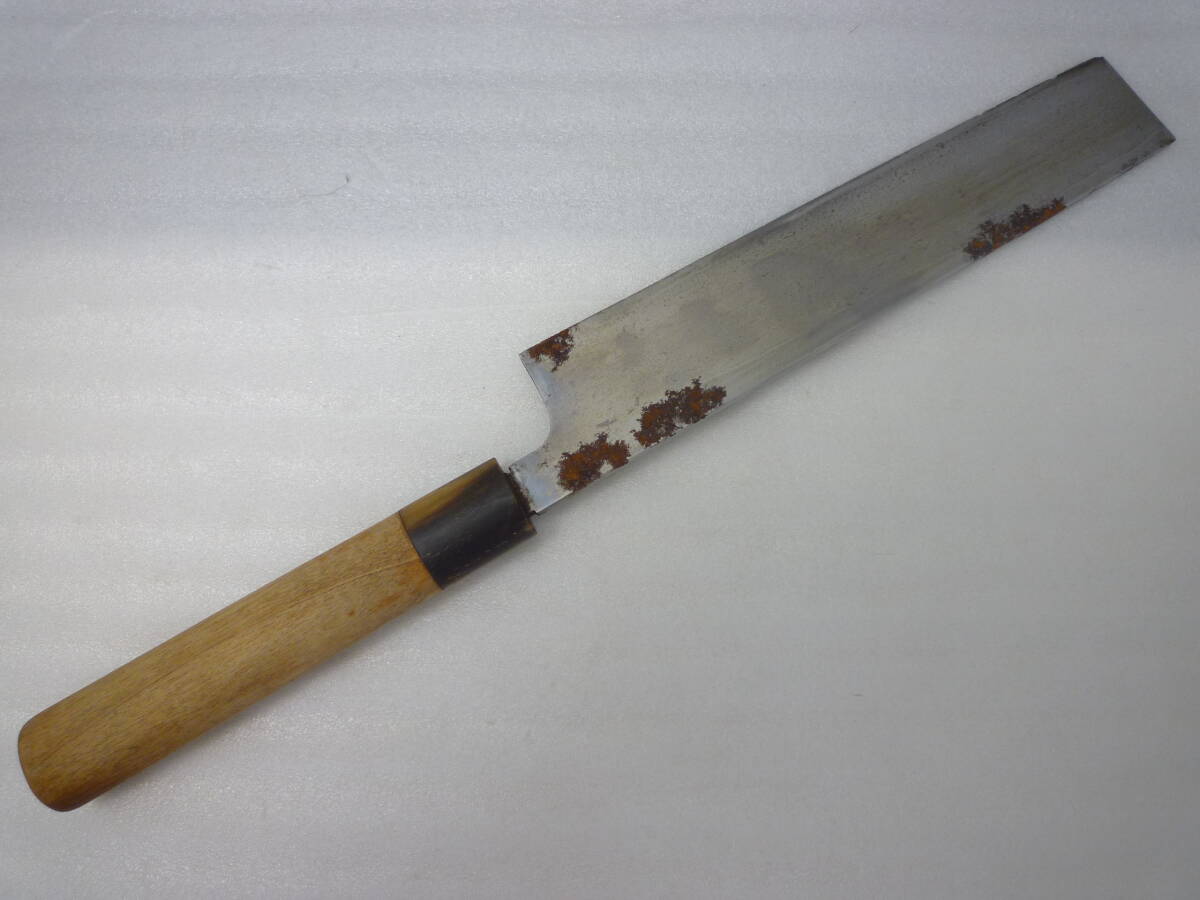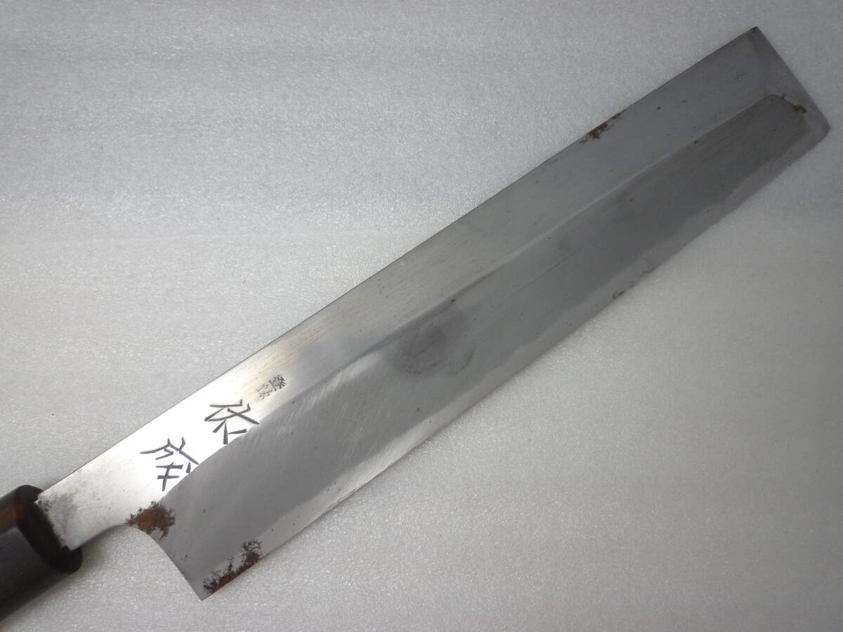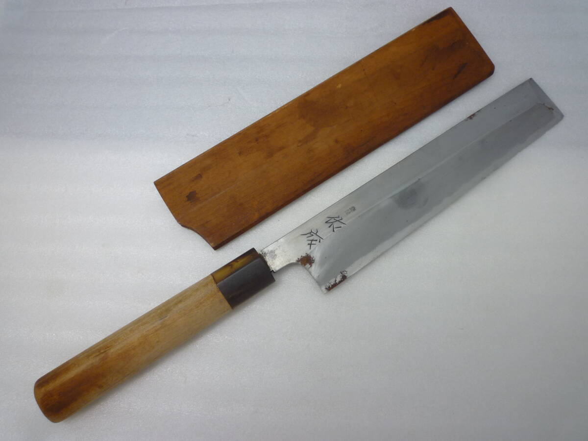 ◆包丁祭◆和包丁 登録 佑成(すけなり)作 菜切薄刃包丁 片刃 刃渡り197mm 全長約35.5cm 在銘 鞘有 USED 調理器具 料理道具