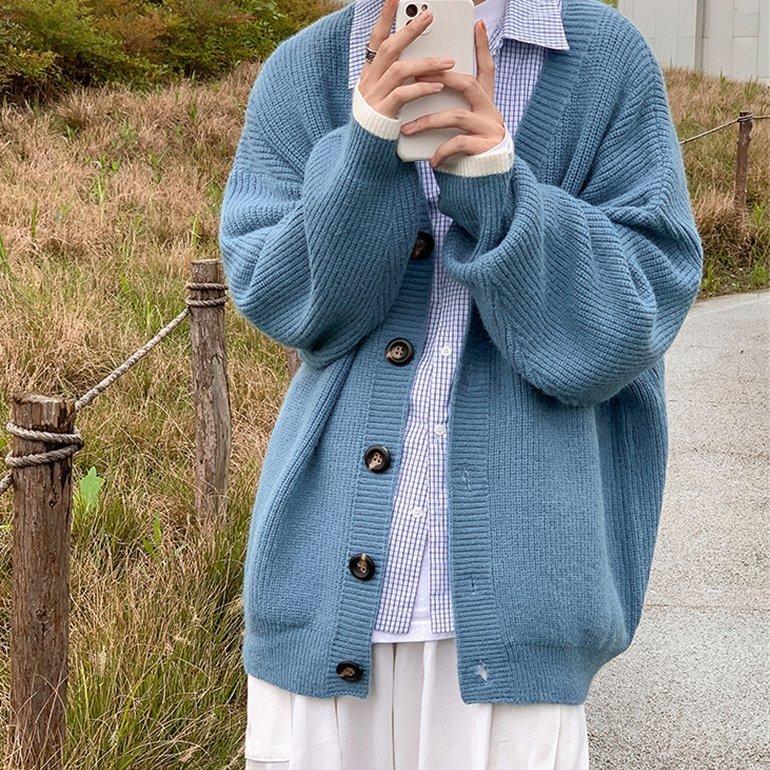 セーター ニット オフィス 人気 カジュアル 長袖 メンズトップス アウター ライトブルー2XL
