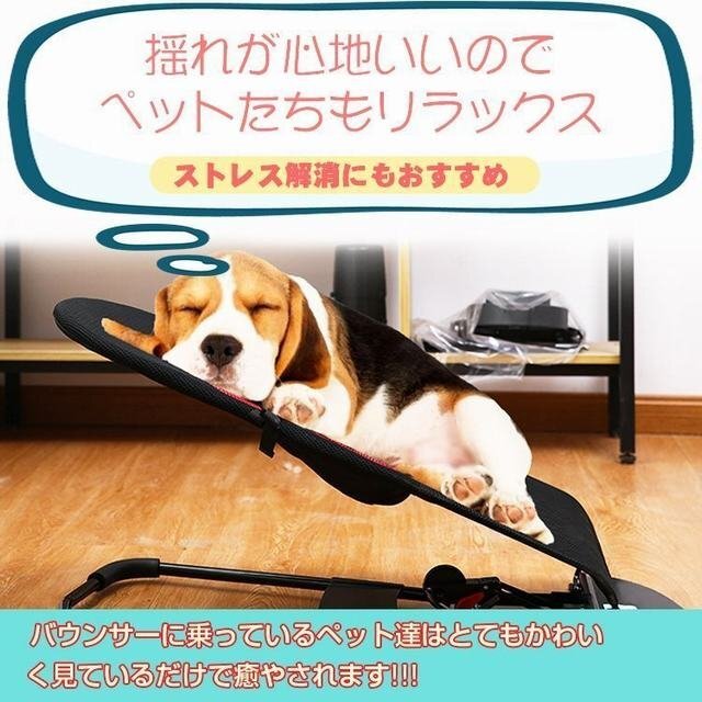 "【商品内容】:ペットバウンサー 【サイズ】:約39cm×78cm×42~55cm 【商品重量】:約1.54kg 【耐荷重】:バウンサー:約15kg チェアー:約20kg