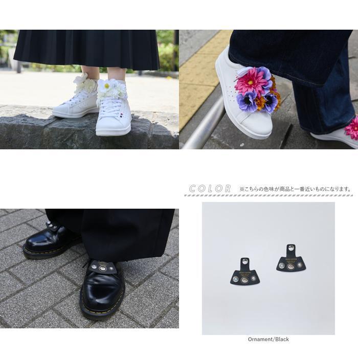 | 商品説明 | ・・【ワンタッチで取外し自由】 ・・スナップボタン付で靴の好きな箇所に簡単に留められるイージーユースタイプ。 ・【甲のどの位置でも付け替え可能】 ・・その日の気分でつま先でも甲でも付け替え可能。 |