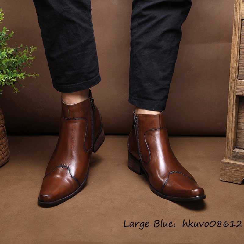 最上級&定価12万 本革 レザーブーツ 牛革 職人手作り 皮靴 ショートブーツ イギリス風 ビジネスシューズ マーティンブーツ ブラウン 24.5cm