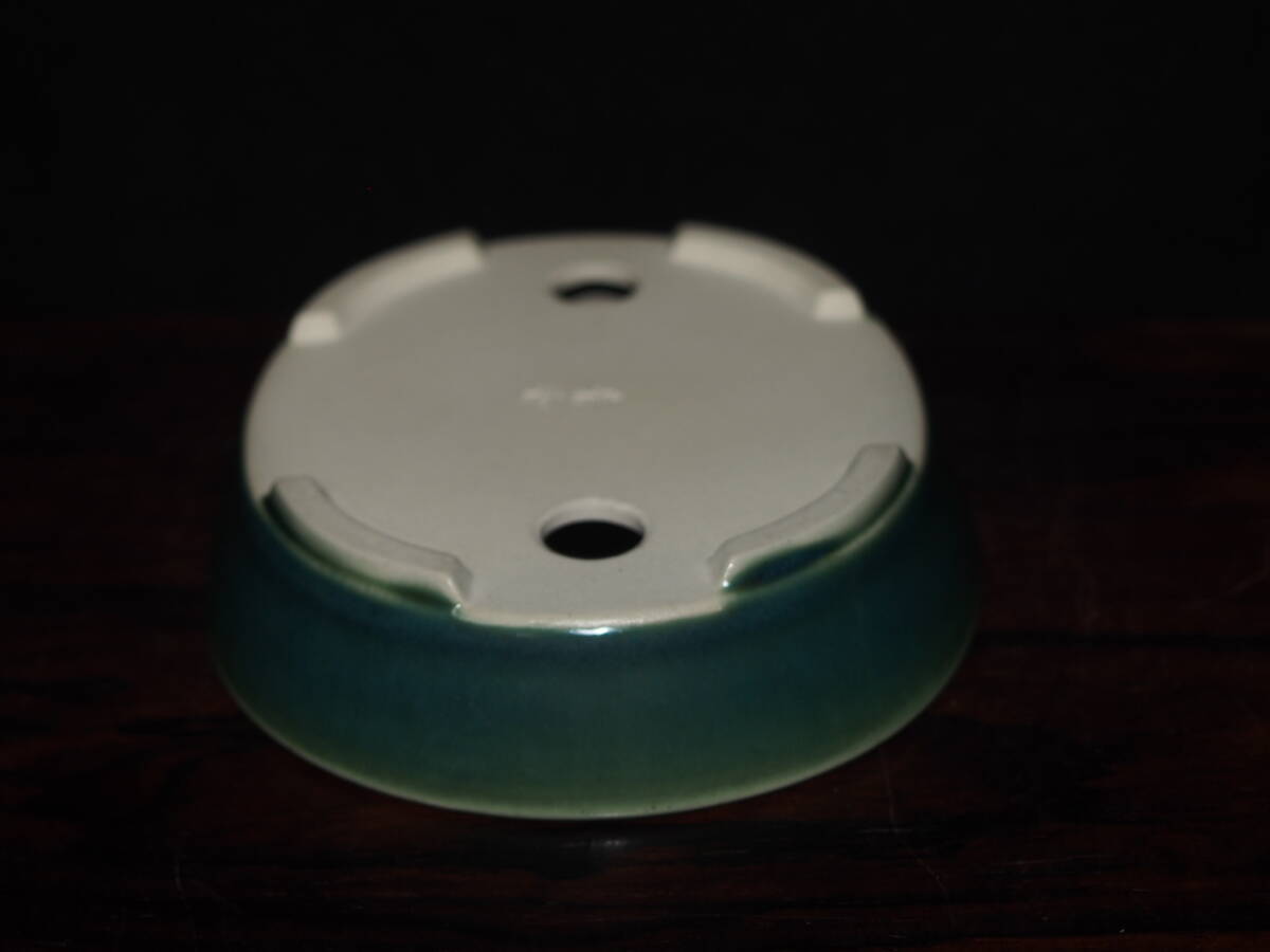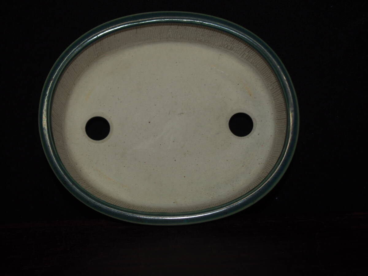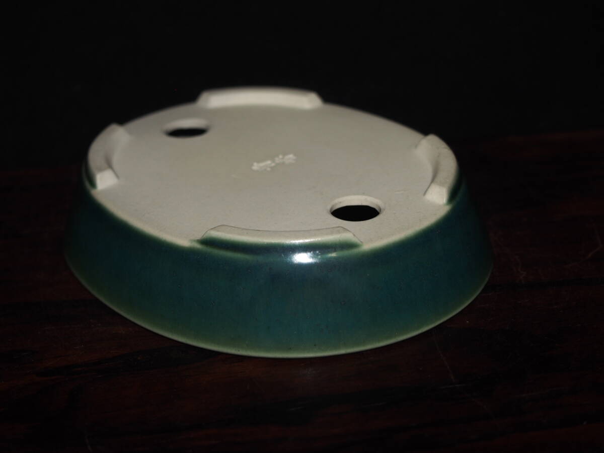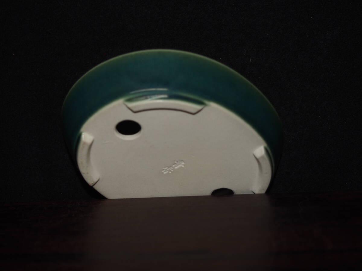 『大和魂』【春田青香①】緑釉窯変反縁氷裂切脚楕円鉢・巾11.8cm・人気物故作家 | ||