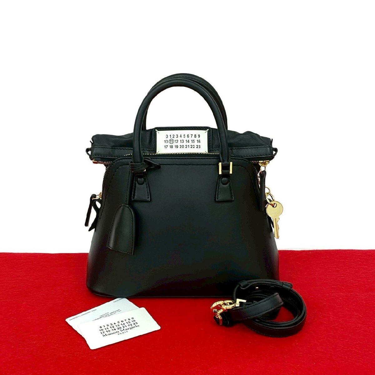 極 美品 MAISON MARGIELA メゾンマルジェラ 5AC ミニ カーフ レザー 本革 2way ハンドバッグ ショルダーバッグ ブラック 黒 31613