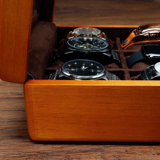 落ち着いた色味の木製収納ケースは大切な腕時計コレクションに相応しい安心感を与えます。シンプルですが、機能的なデザインは深さと直線にこだわり、上品と高級感を与えます。