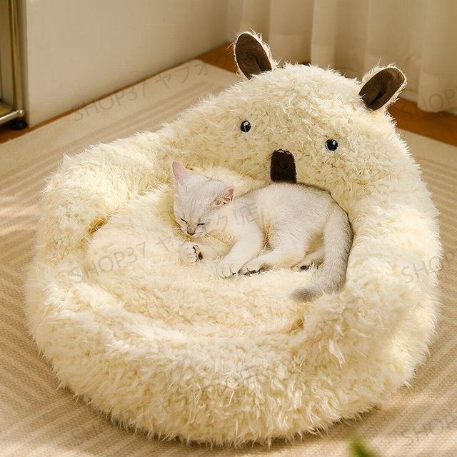 安心な素材を使用しております。柔らかい生地のフチは空間を暖かくし、ペットが頭を乗せられる快適なヘッドレストとしても機能します。柔らかい生地で空間を暖かくし、手足が伸ばしやすく,もっちりとした感触の柔らかベッドがネコと犬の体をやさしく包まれ、ふんわり支えます。