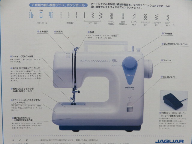 ◆商品内容◆ JAGUAR コンパクトミシン SB-001 ※説明書・箱付き。 ※通電確認のみ。保証なし。 ※フットコントローラーで針は上下に動きました。 ※手元ライトは不明。玉切れの可能性あります。 ※付属品の2番フェルト(糸こま敷き)が欠品。 ※糸はつなげたまま出荷します。現状渡し。 ※重さ(箱入り):6.8kg ※箱は、傷み・汚れあります。また、梱包材として使用して出荷予定です。 ※この商品は宅急便100サイズで発送させて頂く予定です。梱包の関係で変わる可能性があります。 宅急便 100サイズ(10㎏以内) 北海道2510円 北東北1920円 南東北1790円 関東1650円 信越1650円 北陸1530円 中部1530円 関西1530円 中国1530円 四国1530円 九州1650円 沖縄2710円 写真にあるのが商品すべてとなります。 *その他の付属品はございません。 ◆商品状態◆ こちらの商品は代理出品となります。 中古品ですので、傷、汚れがございます。 ご了承の上入札ください。 商品は1点物につき返品、交換できませんので、ご理解の上入札ください。 以上ノークレームでお願いします。 *記載内容と異なる場合はご連絡ください。 |