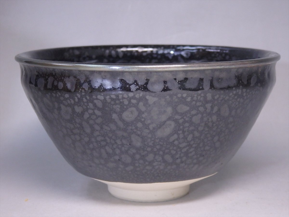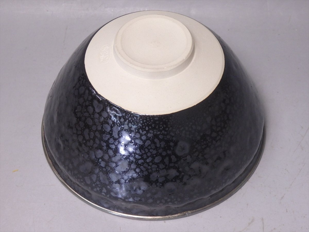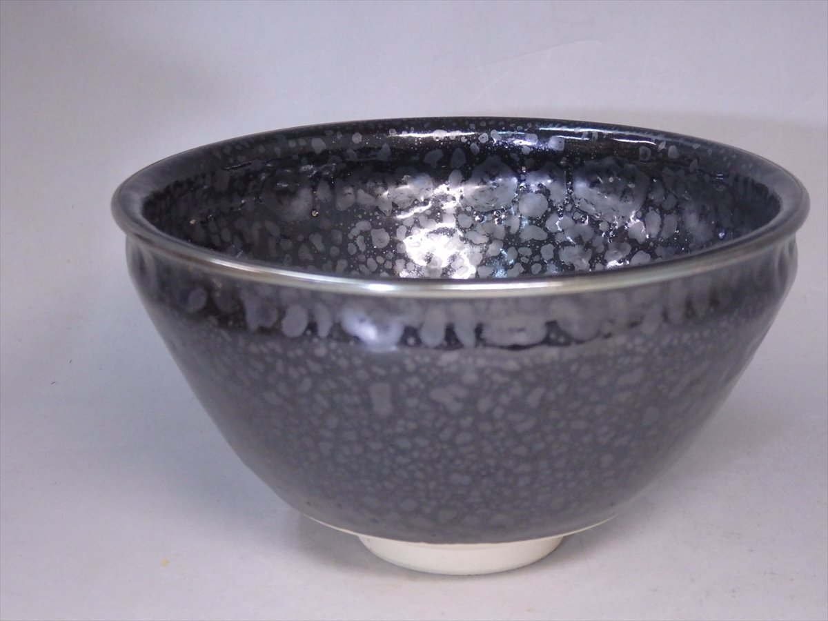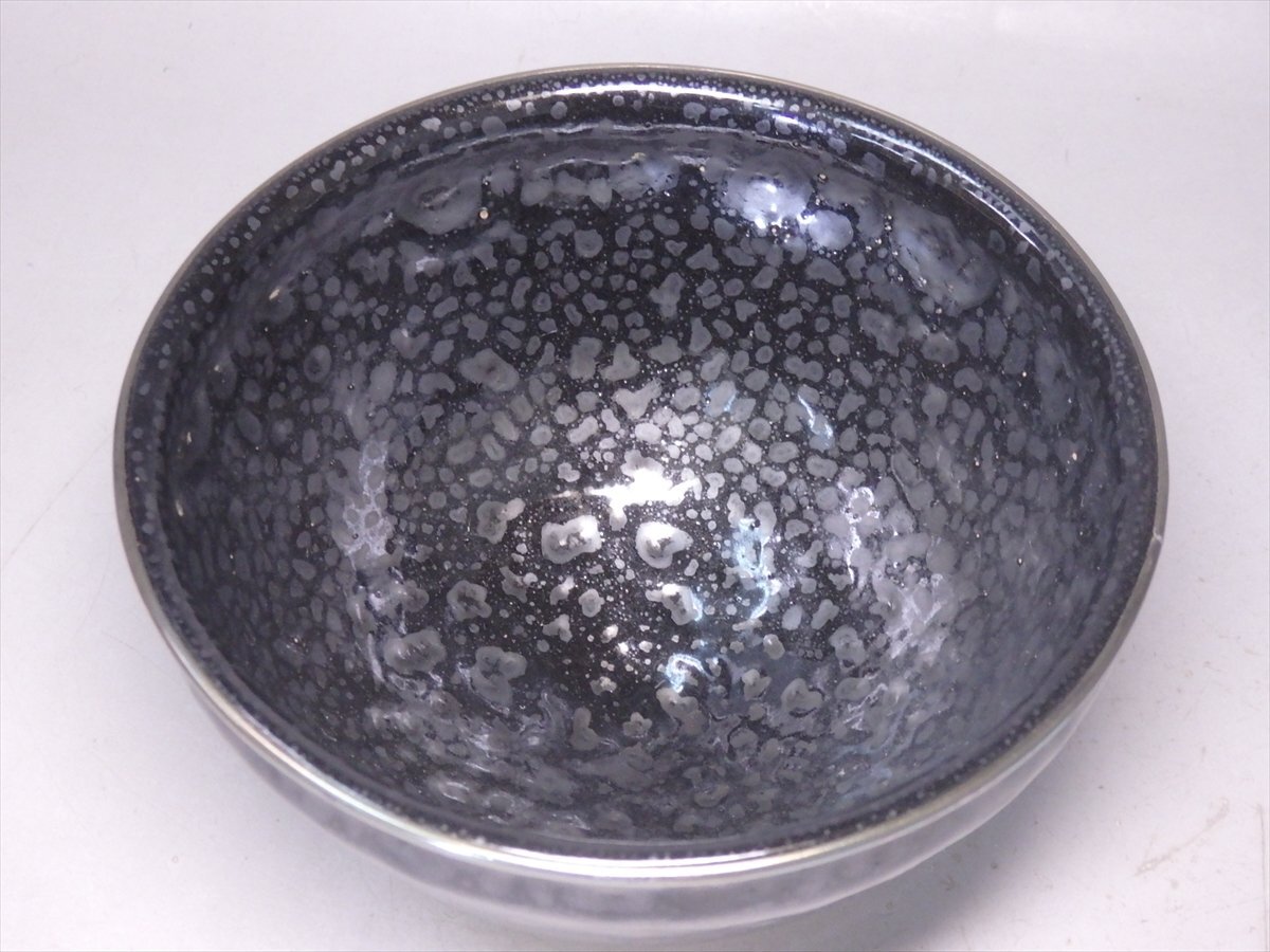 ★清和窯【油滴天目茶碗 共箱】銀覆輪 状態良好!直径12.7×高さ7cm 茶道具 高麗・李朝時代の茶陶技術を得意とする窯元 京焼 茶器