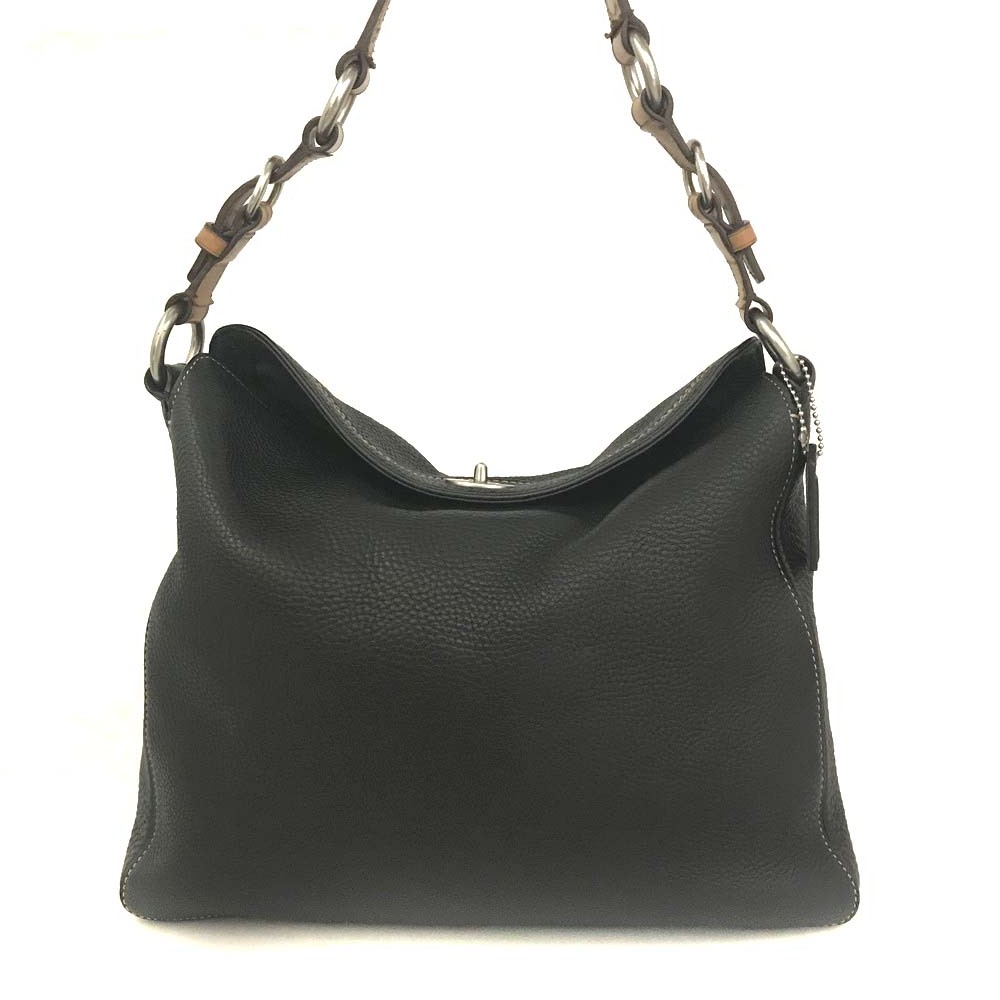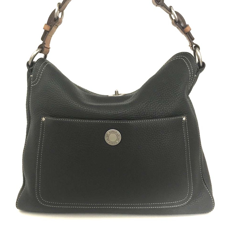 1円 COACH コーチ 10132 レザー ターンロック ワンショルダーバッグ ブラック /ZX1092