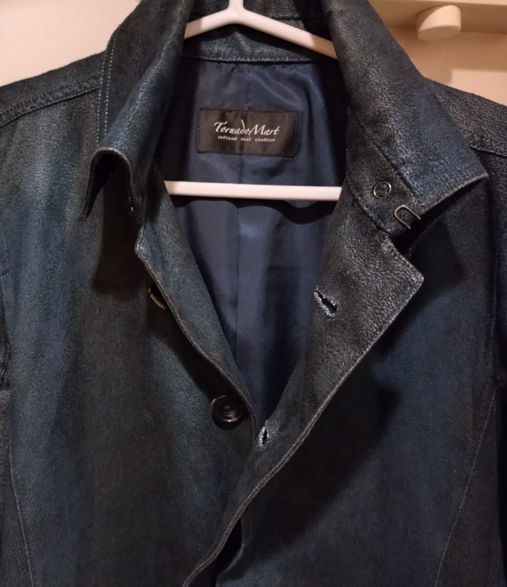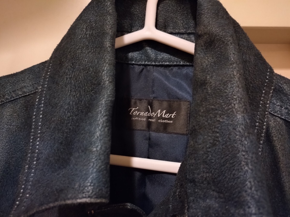 -TORNADO MART トルネードマート ネイビー&ブラック マーブル 返し衿ジャケット スタンドコート Mサイズ-