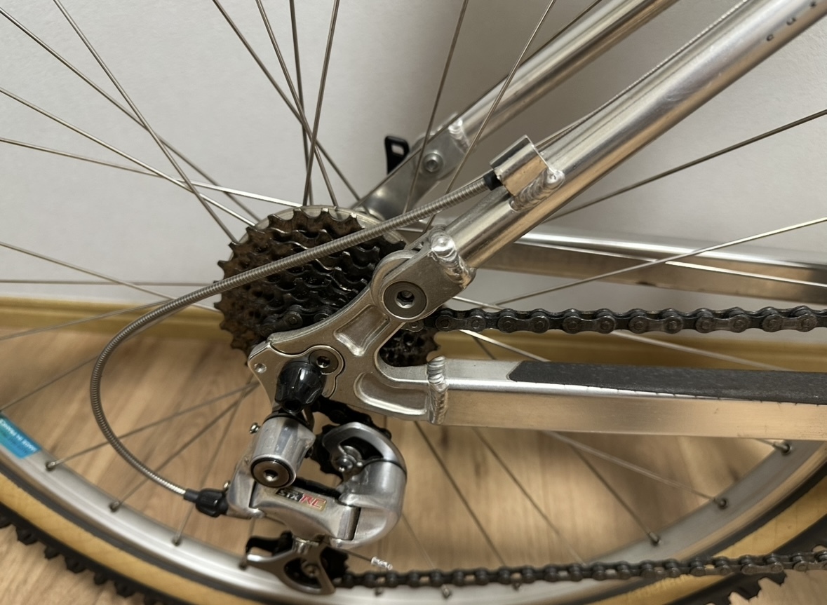 変速はシマノSTX RC 3×8でシフターはマイクロシフトのサムシフター(フリクション)に前後とも変更しています。