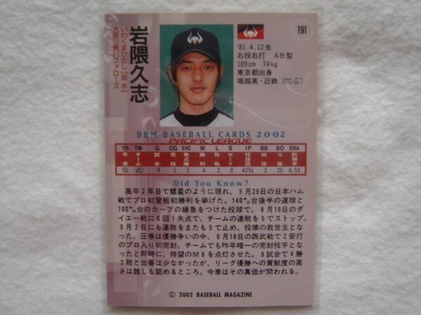 【BBM プロ野球カード 2002】No.191 岩隈久志 大阪近鉄バファローズ【トレーディングカード トレカ ベースボールマガジン社】