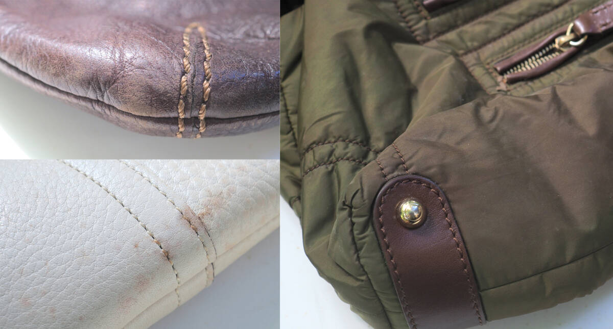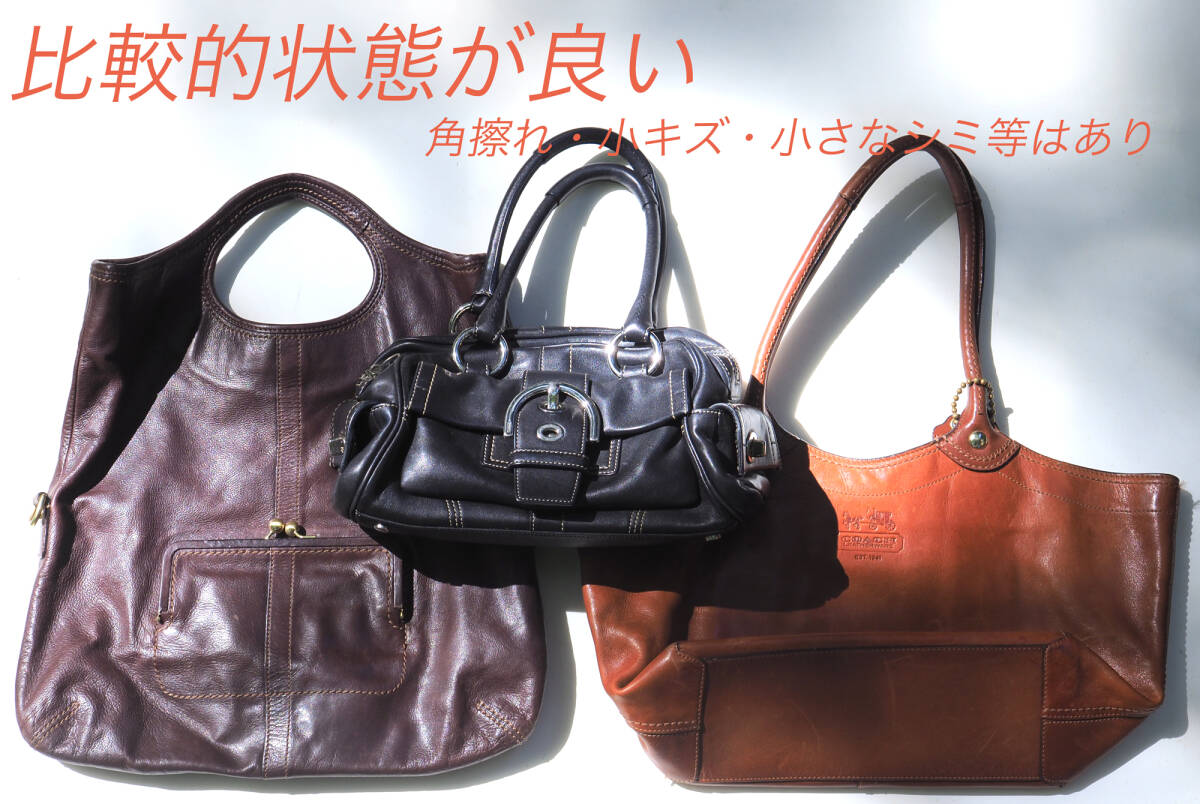 すべて、本体の破れやハンドルのちぎれ等なく、バッグとしての最低限の使用が可能な状態です。