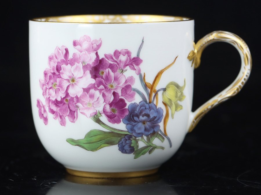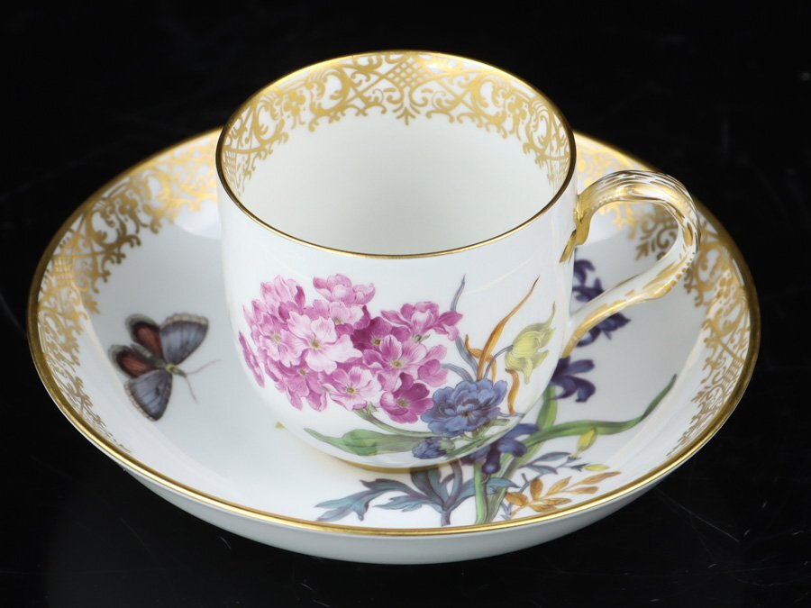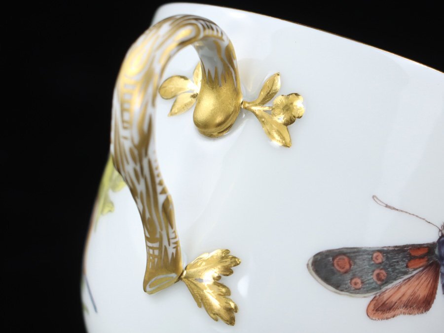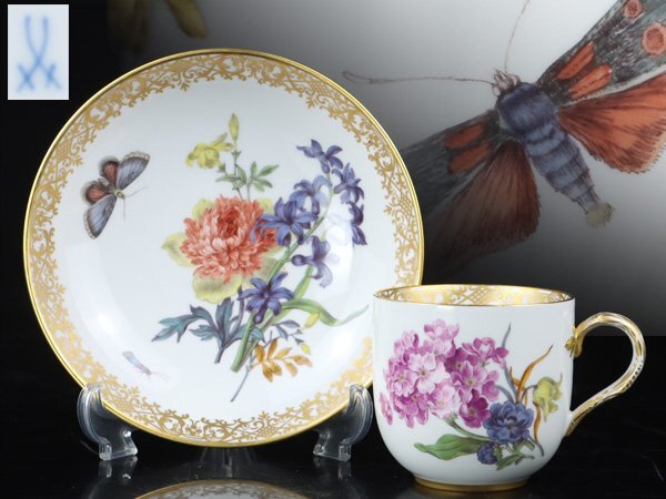 サイズ(約) カップ:高さ 6.7㎝/口径 7.2㎝ ソーサー:高さ 3.7㎝/直径 15㎝ 重量 330g 付属品 - 名家コレクション 激レア!マイセン最高峰 最上級の華 「FF ブルーメ」 花と昆虫 金彩装飾 カップ&ソーサー 未使用極上品 本物保証 激レア!マイセン最高峰、FFブルーメのカップ&ソーサーでございます。 このシリーズのカップ&ソーサーは1客の定価が110万円と大変高価なお品です。 FFブルーメのFFは「The Finest of the Finest」の略で、 いわゆる「最上級の花」を意味します。 1730年頃創案されたもので、マリア・メーリアンという女性博物学の図鑑が手本とされており、銅版画や木版画をもとに描かれています。 マイセンの花絵の中でも最高の絵付けでございます。 細い線で写実的に描かれた昆虫や彩色美しい花絵、縁取りに金彩が装飾された見事な作品です。 背面には「100」のペインター番号が記されています。 大変高価で入手困難な逸品、マイセンコレクター様必見の作品となっております。大事にしていただける方のご入札をお待ちしております。 |