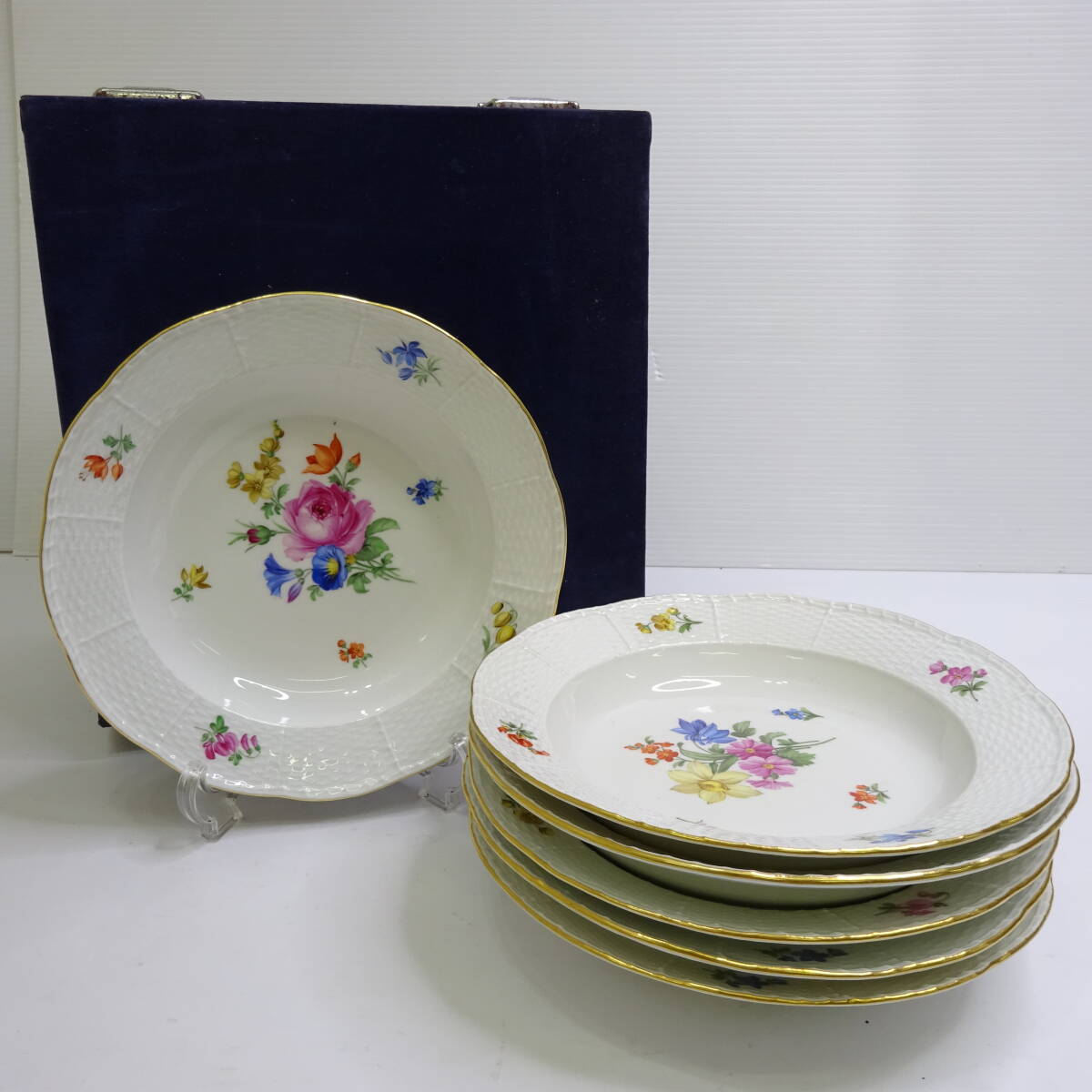 オールドマイセン 金彩花絵 プレート 22cm 計6点 MEISSEN 皿 テーブルウェア コレクション 120サイズ発送 p-4156932-29-mrrz1