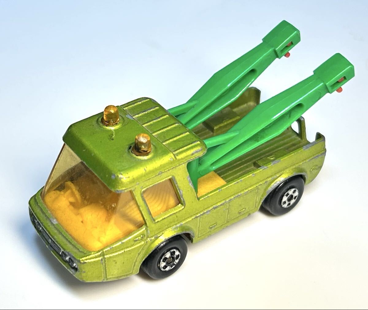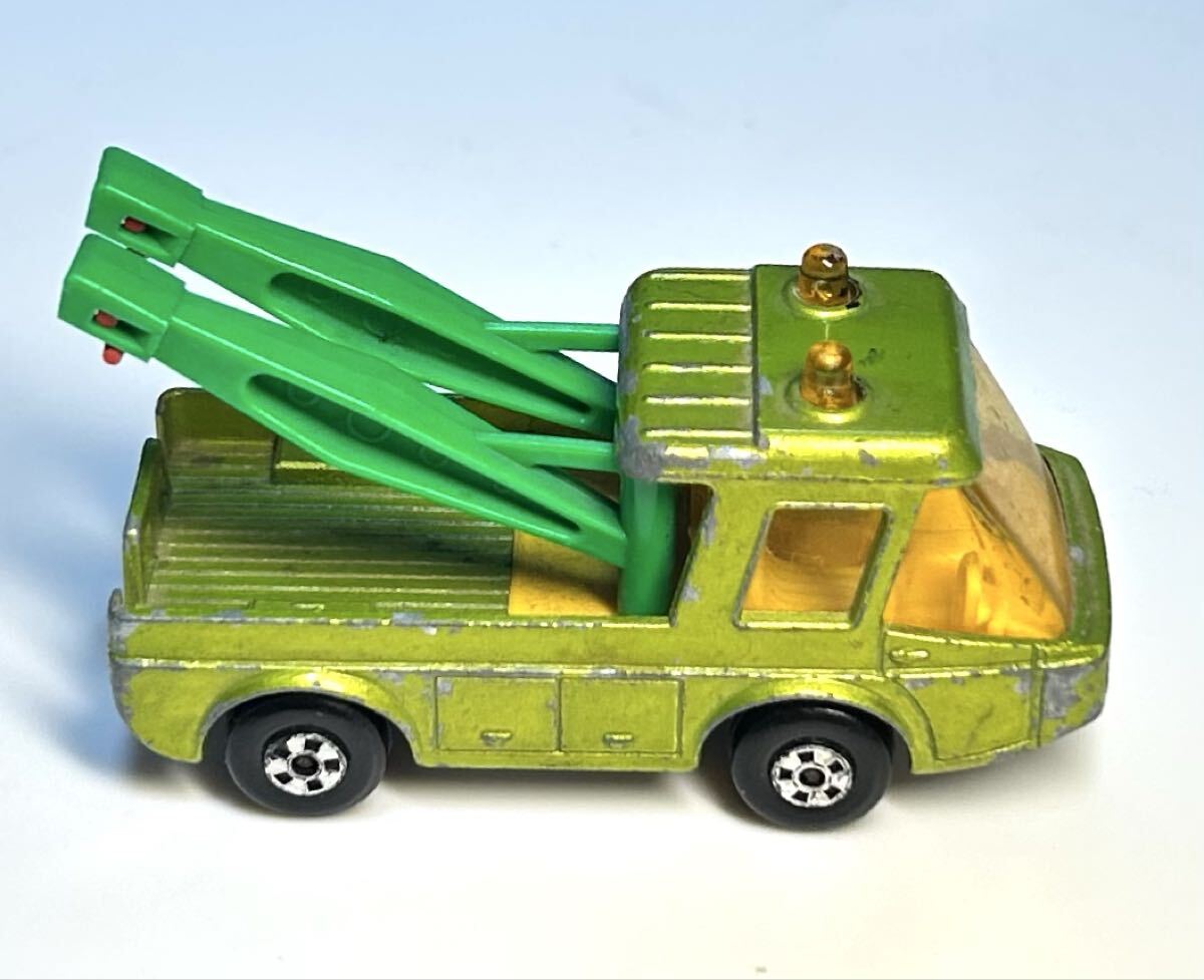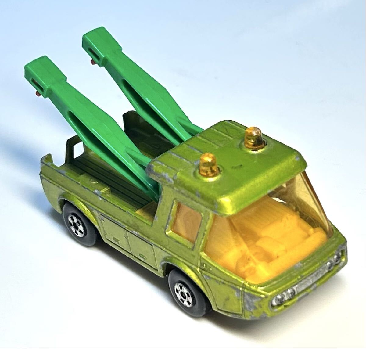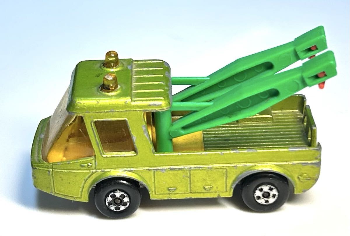 写真のように塗装剥げや傷などございます。また、レッカーフックが欠損しています。箱はありません。