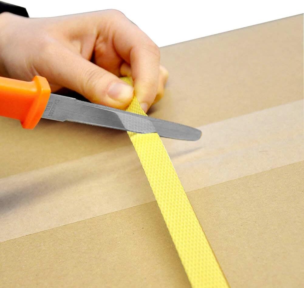 収納に安心なキャップ付き手軽に使える段ボールのこぎり・工作や梱包、開封、減容に便利・特殊なギザ刃で鋭い切れ味を生み段ボールだけでなく梱包用のPPバンドやビニール等も滑らずカットできる・両刃なのでどちらからでも使える・曲線も自由自在に切ることが出来る・錆に強いステンレス刃物鋼を使用・つばのあるハンドルは手の滑りを防止し、握りやすく安全に作業ができる・異物混入、ISOなどの安全対策で導入するケースが増えている