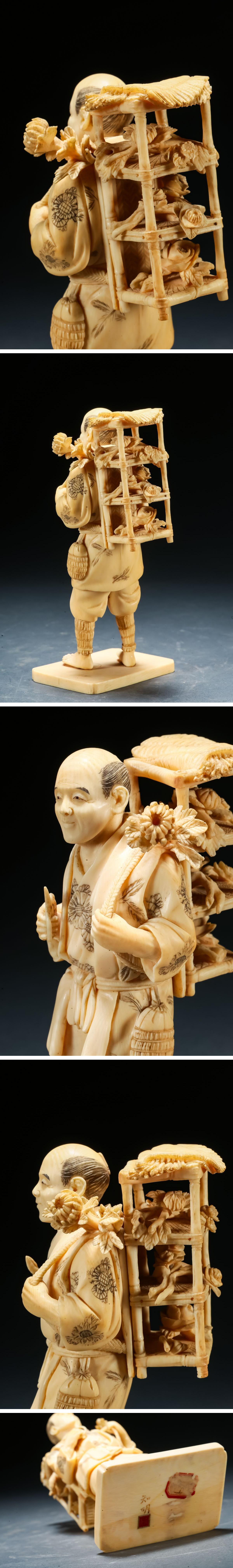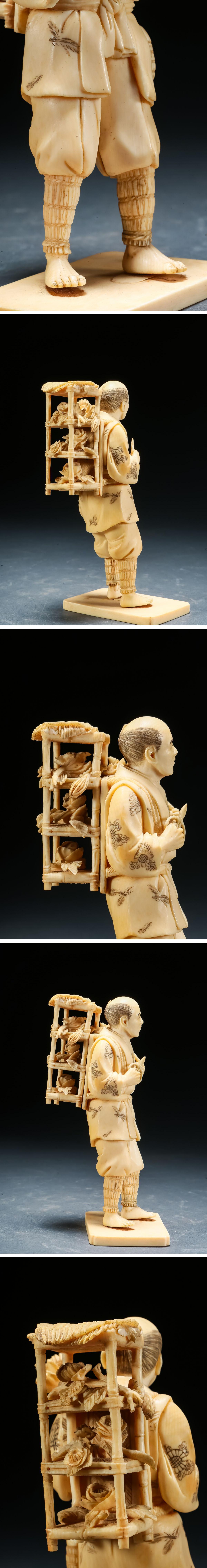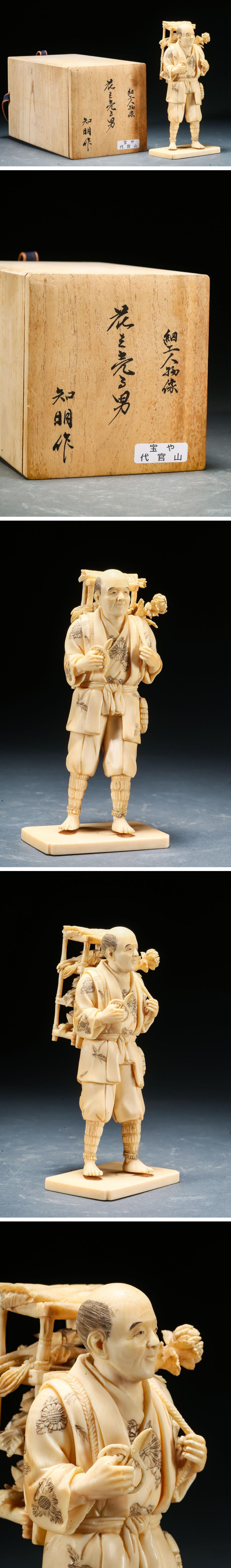 【雲錦】某有名オークション購入 時代物 名匠「知明」刻 花売男 特殊白材 古置物 古擺件 古美術 時代コレクション73S01-354