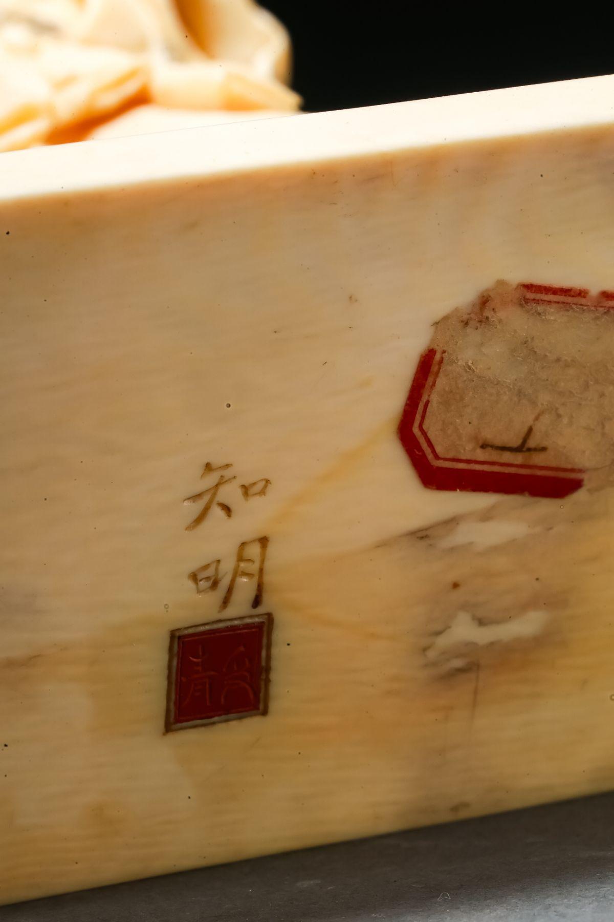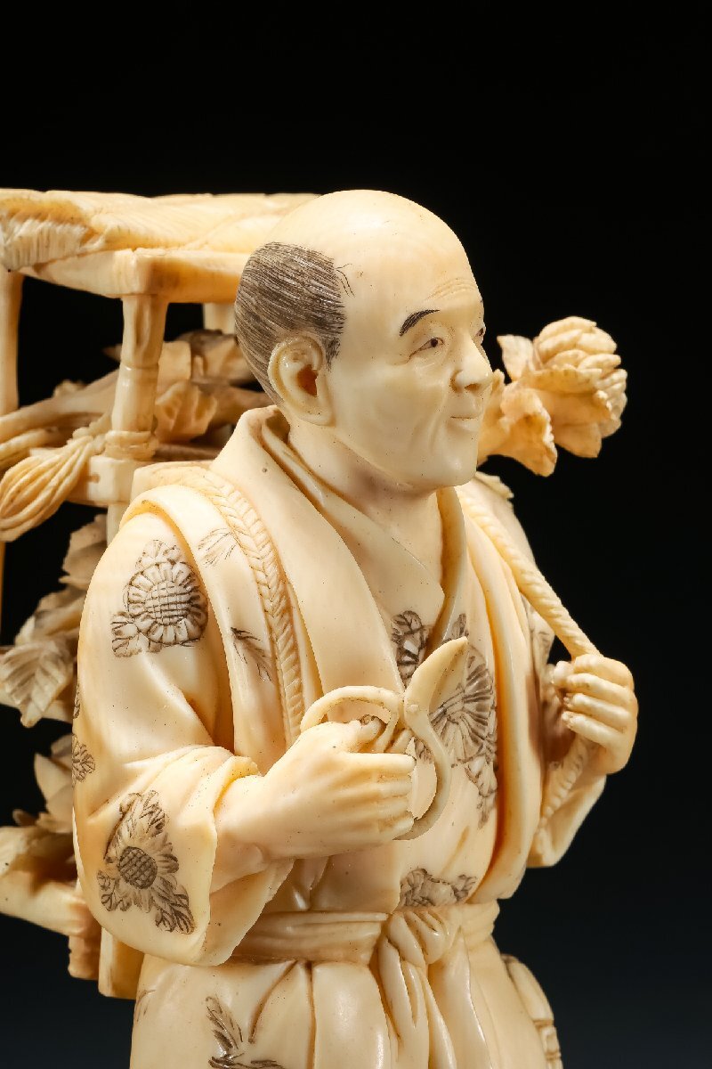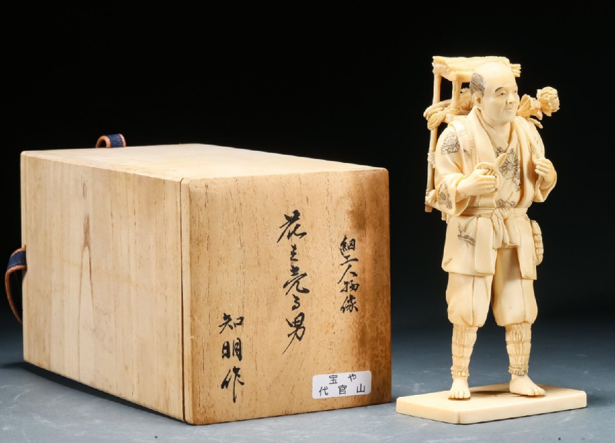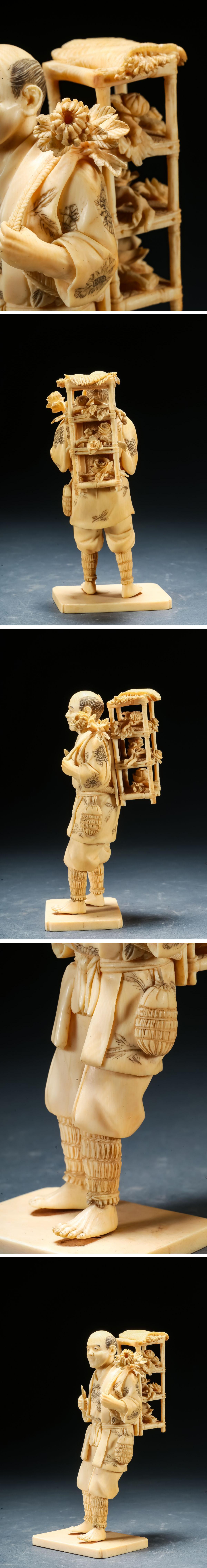 【雲錦】某有名オークション購入 時代物 名匠「知明」刻 花売男 特殊白材 古置物 古擺件 古美術 時代コレクション73S01-354