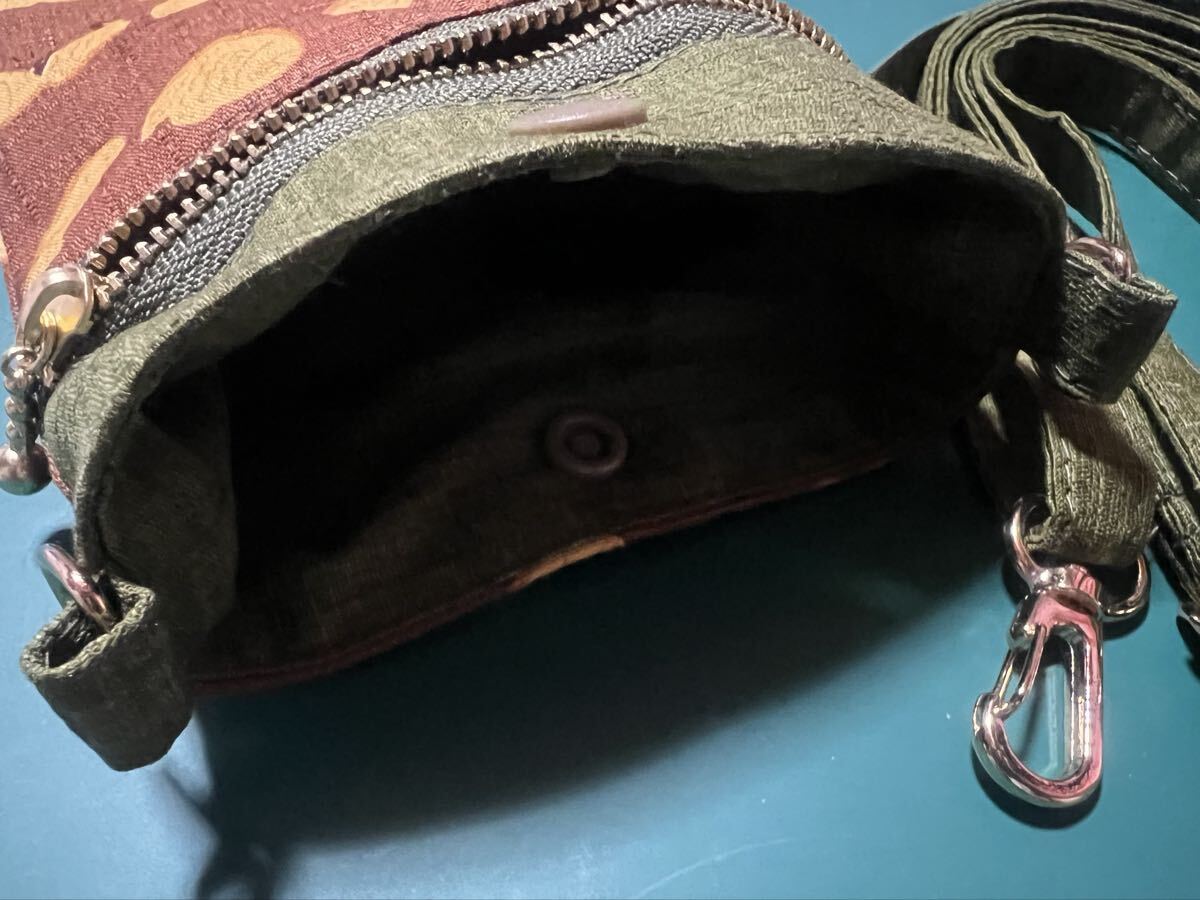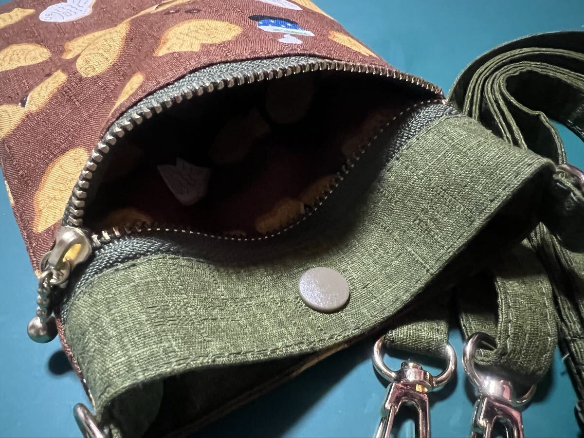 ファスナー式の開閉で、スマホや小物を安全に収納できます。
