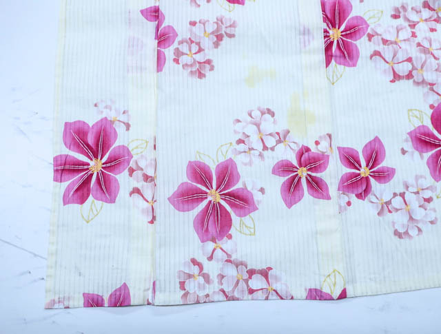 リサイクル商品のため、上前身頃や左脇縫、両袖など全体の所々にシミがございますが着用可能なお品です。 タグ付きです。 地色は、アイボリーです。 1枚目の画像が近いお色かと思われます。 素材は綿です。 |