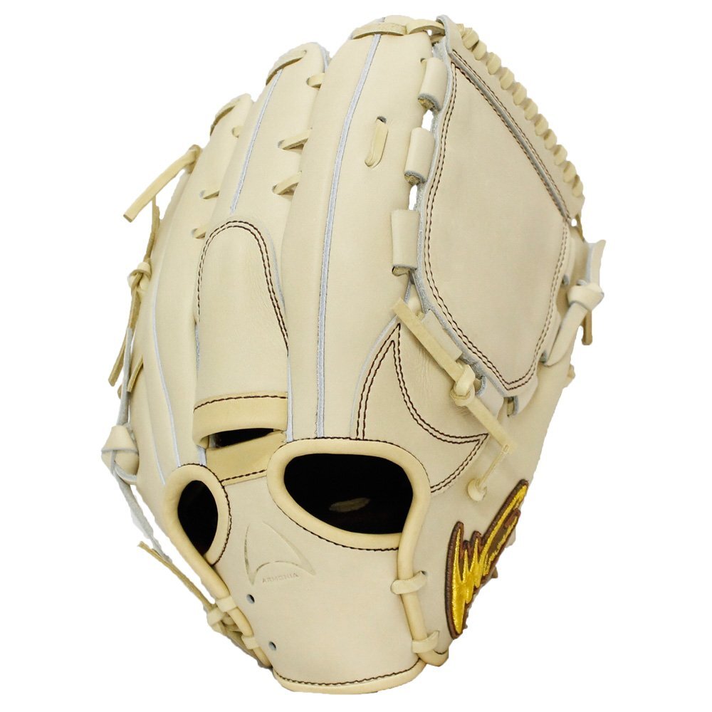 | 詳細 | 中指を出す独特形状のアルモニーアグラブ。 このグラブを使用することで腕の中心線となる中指を軸に上半身・体幹・下半身と’繋がり’が生まれ、腕や下半身といった特定のポイントに頼った動きではなく、身体全体で投球方向に’勝手に進む’感覚や’力んでいないのに出力が高まる’感覚を感じることが出来ます。 フラットウェブにキャメルカラーの限定モデル。 サイズ:29cm ステアレザー  |