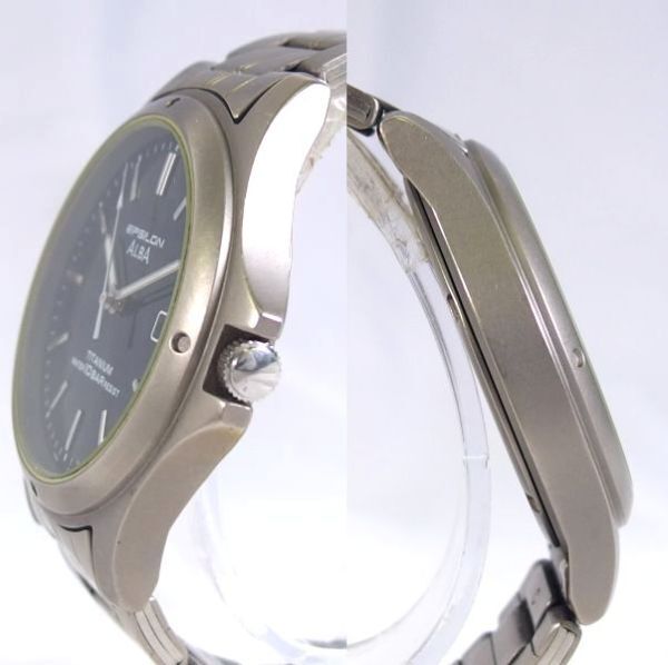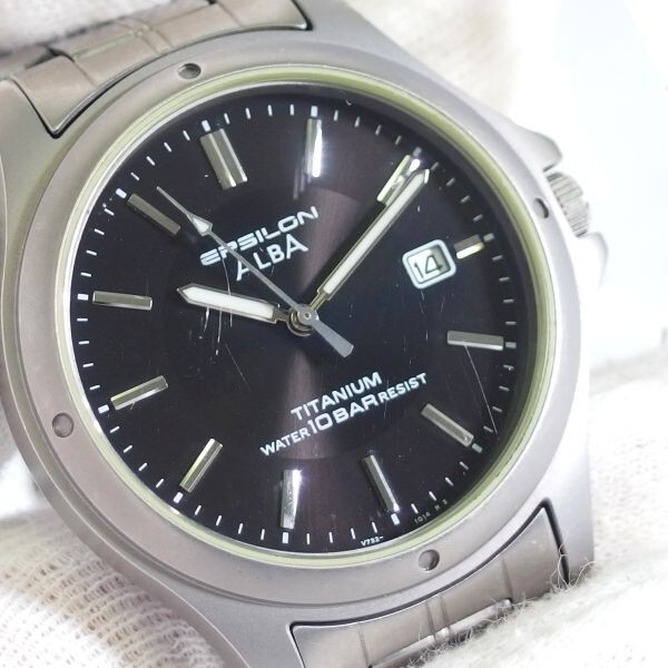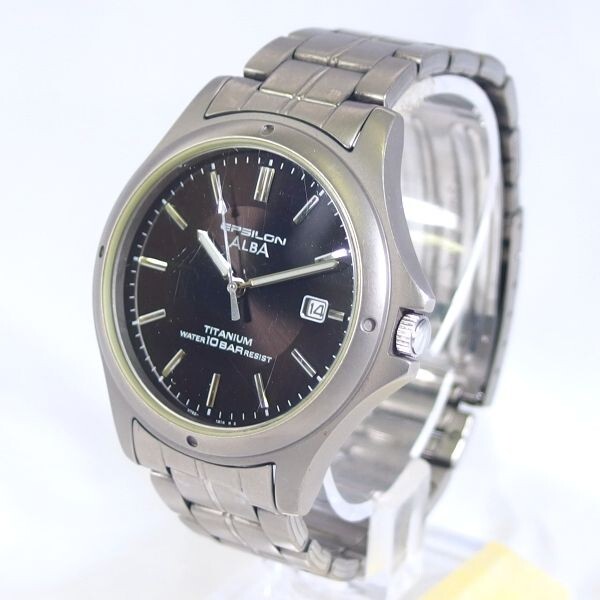 ALBA EPSILON TITANIUM アルバ エプシリオン 三針カレンダー アナログ腕時計 純正ベルト V732-0R80/60サイズ