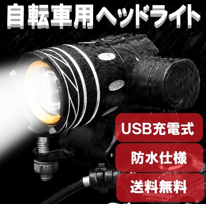 ☆送料コミコミ☆ USB充電式 自転車用 ヘッドライト LED 自転車ライト 夜間運転 通勤 通学 防水