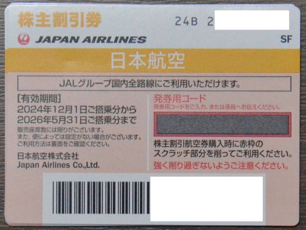 「コード通知」JAL国内線株主割引2枚(~2026年5月31日搭乗分まで有効)