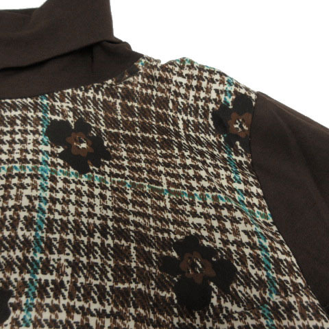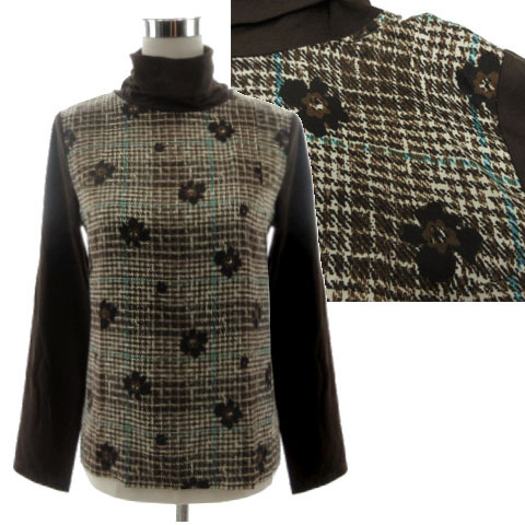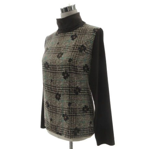 ギャラリービスコンティ GALLERY VISCONTI ツイード転写プリント タートルネックトップス 1391028 日本製 ブラウン 茶 ベージュ 青系 3