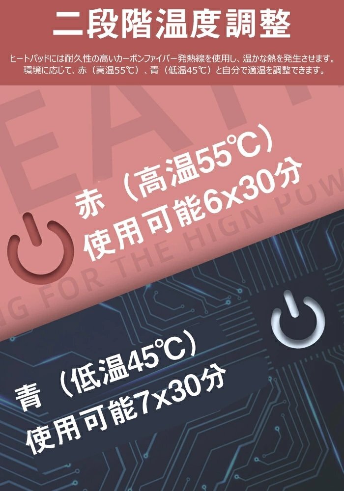 【2段階温度調整】ヒートパッドには耐久性の高いカーボンファイバー発熱線を使用し、温かな熱を発生させます。 環境に応じて、赤(高温55℃)、青(低温45℃)と自分で適温を調整できます。USB給電の電熱器で、どんな場所でも簡単に温めることができます。 風邪や生理痛、肌荒れに悩む女性に! 電気湯たんぽは、冬の寒さをしのぐためのマストアイテムです。