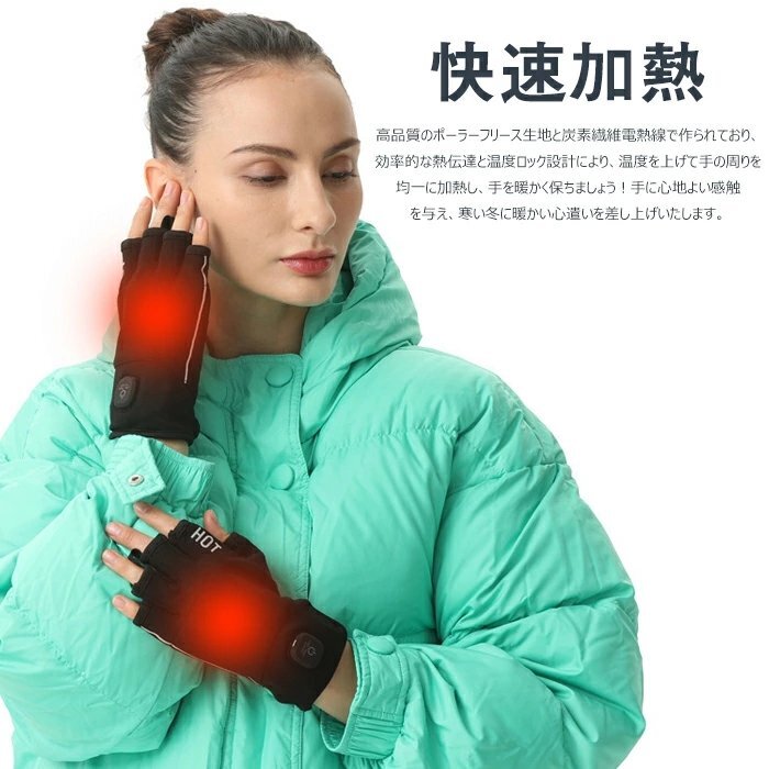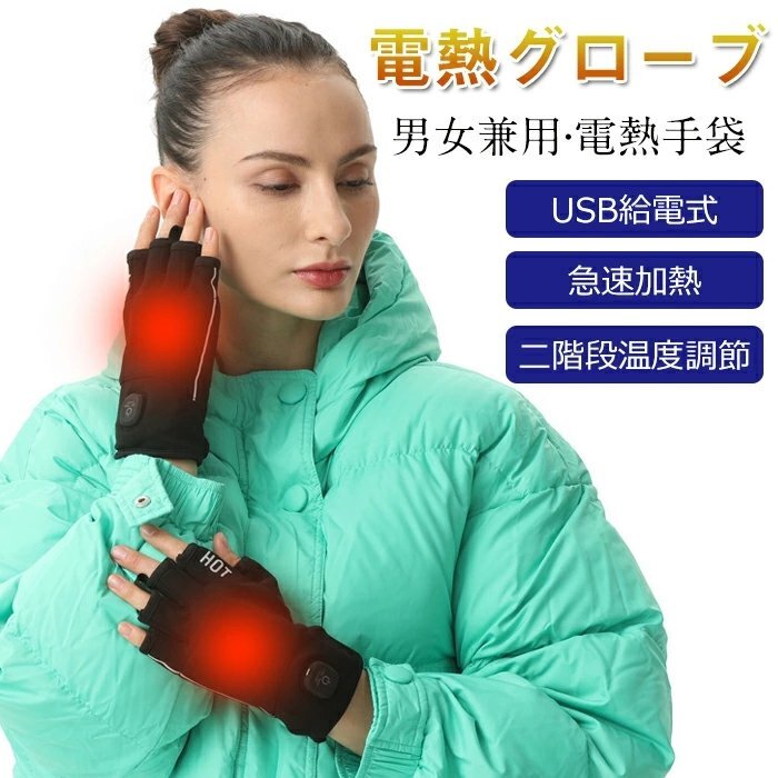電熱グローブ メンズ 指切り 電熱手袋 レディース USB給電式 加熱手袋 発熱手袋 暖かい電熱グローブ ヒーターグローブ☆S/L選択/1点