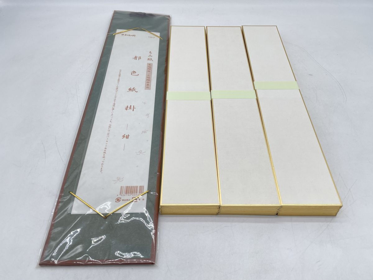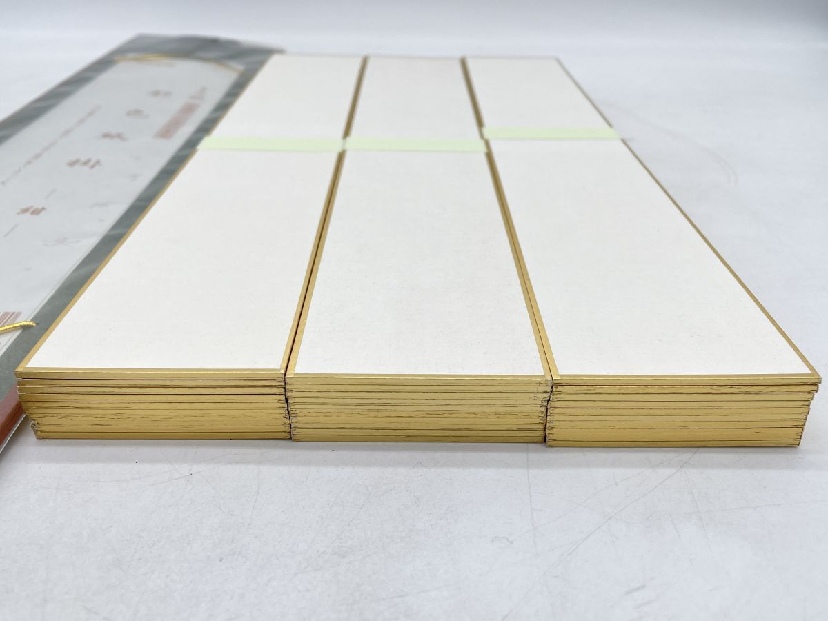 「もっと見る」へ画像追加★商品説明★ | 長期保管しておりましたので無地短冊にシミが見られます。 【サイズ約】 掛軸 49×10.5cm 短冊 6×36.5cm 30枚 総重量:724g |