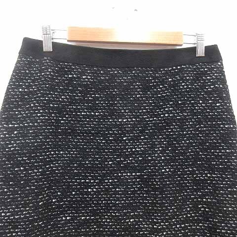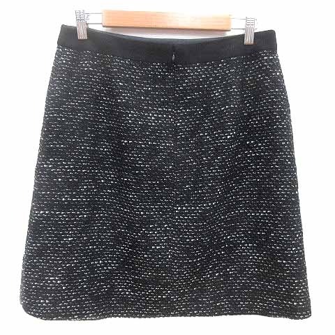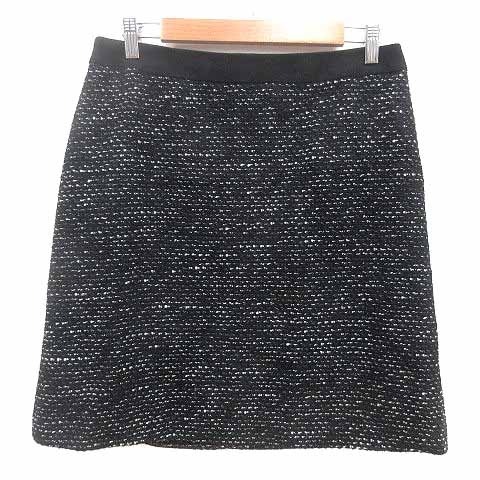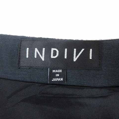 インディヴィ INDIVI 台形スカート ひざ丈 ツイード ウール 42 XL 黒 ブラック /YK レディース