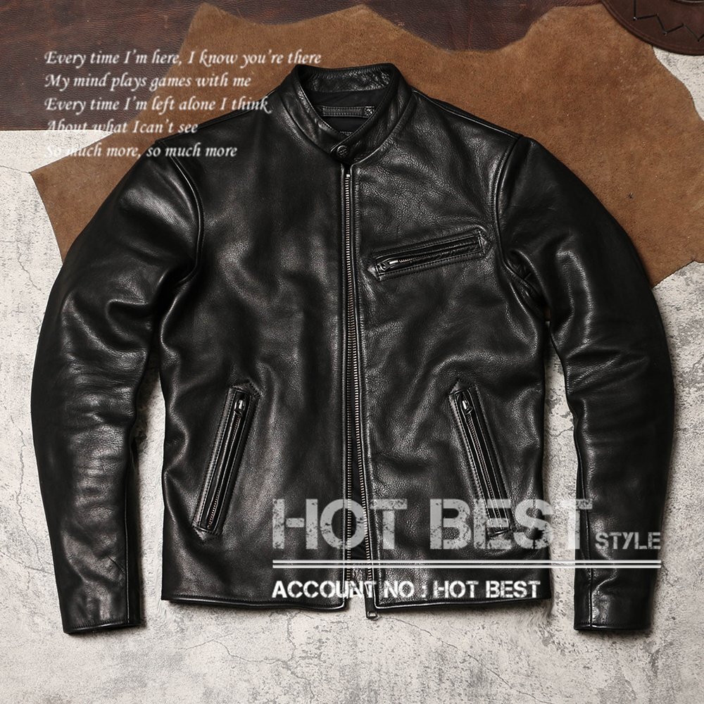 1.2mm カウハイド スタンドカラー シングルライダース メンズ 革ジャン レザージャケット イタリアンレザー 牛革 Y1478/XL