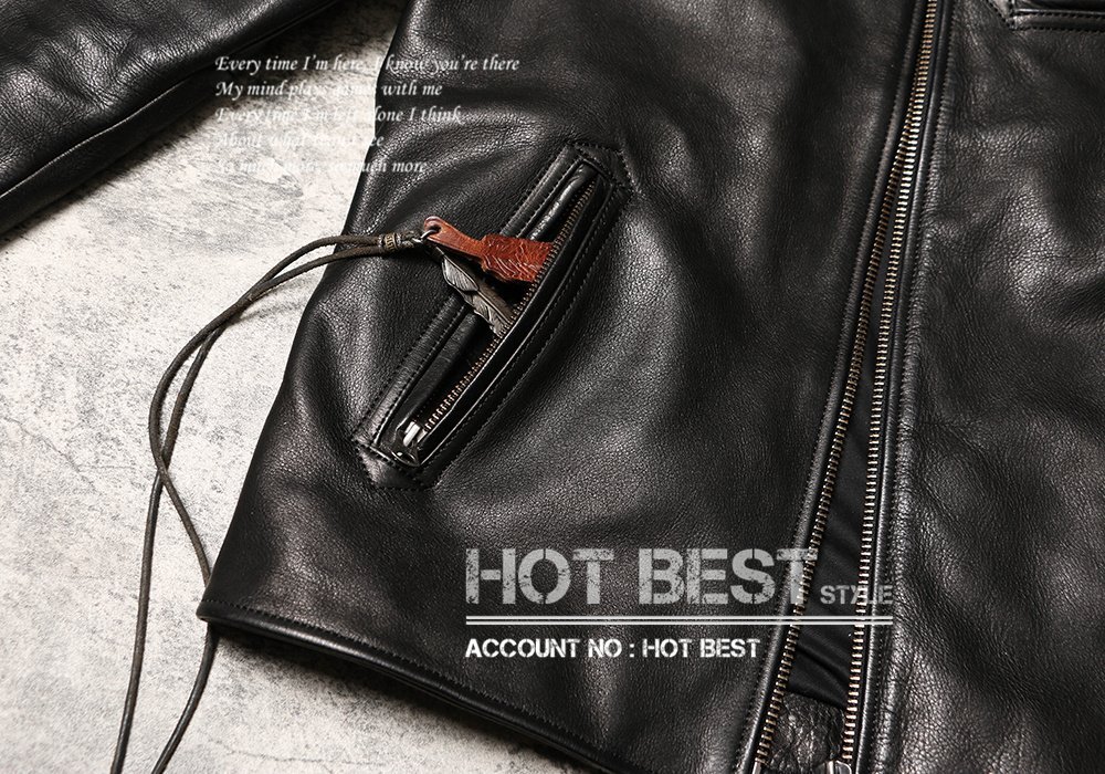 1.2mm厚のイタリアンカウハイド(牛革)を贅沢に使用し、洗練されたスタンドカラー仕様で仕上げたシングルライダースジャケット。