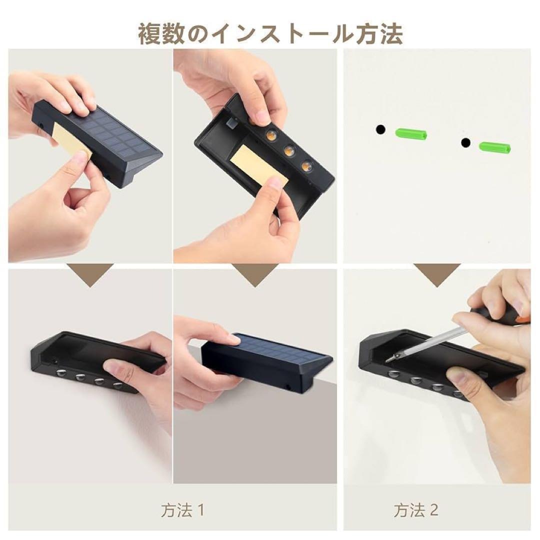 【取り付け簡単】電池やワイヤーを購入する必要がなく、ネジと両面テープが付属しており、写真で詳しく説明されているいくつかの取り付け方法に従って自由に取り付けることができます。に注意:直射日光の当たる場所に設置してください。日陰に長時間放置すると正常に充電されなくなります。