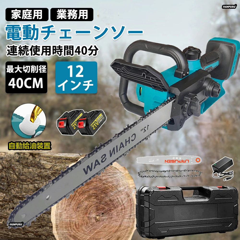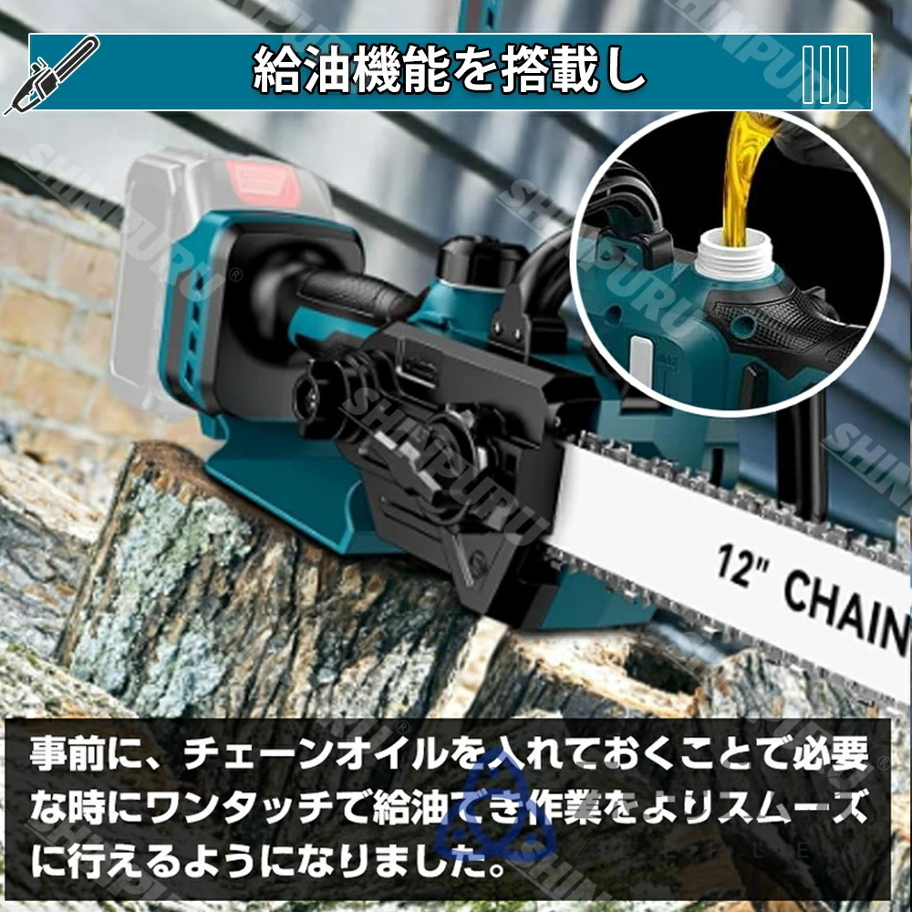 チェーンソー 充電式 ハンディ 電動チェンソー 12インチ 21Vバッテリー*2 18Vマキタバッテリー対応 自動給油 安全ロック 枝切り 強力 女性