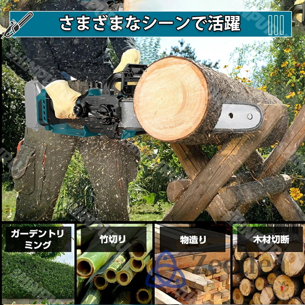 弊社のブラシレスモーター チェーンソーのモーターは最新のブラシレスモーター採用、作動時に火花が発生せず、モーターが摩耗しません、寿命、効率が大幅に高まります。内蔵モーターは、超強動力を提供するとともに、過電流保護、過熱保護、充電保護などのインテリジェントな保護機能を提供して、高効率と安全的な作業のを提供できます。チェーンソーの重量はわずか2.6kg(バッテリー装着している重さ)で、 片手で使えます、長く使うと疲れにくいです、女性やお年寄りによく似合います。