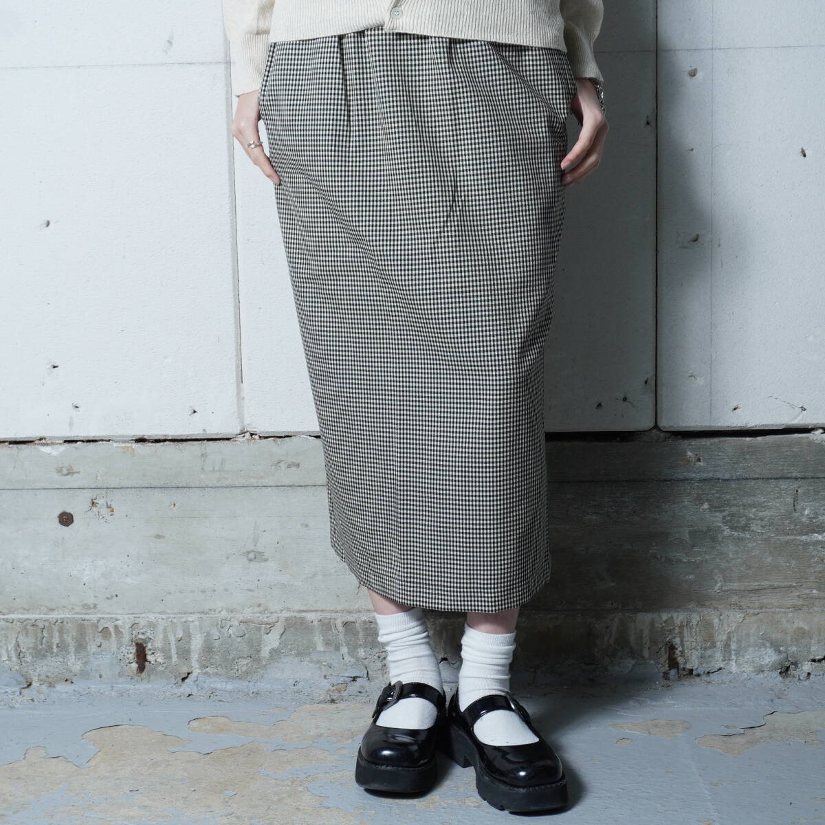 ・シックなブラックとホワイトのチェック柄が個性的なロングスカートです。