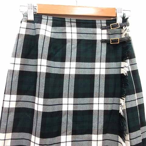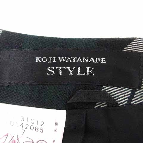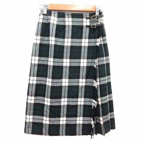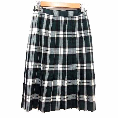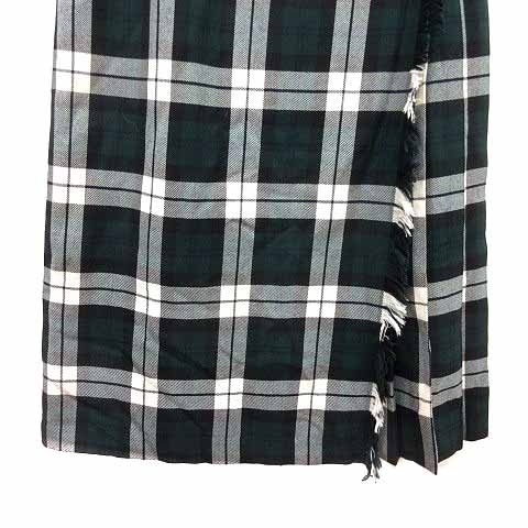 コージワタナベ スティル KOJI WATANABE STYLE プリーツスカート ミモレ ロング チェック ウール 7 S 深緑 白 /YK レディース