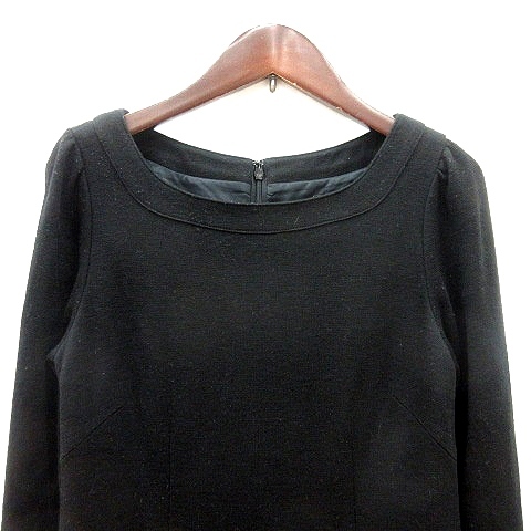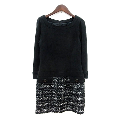 クイーンズコート QUEENS COURT ワンピース ミニ 長袖 ドッキング ツイード 1 S 黒 ブラック /MN レディース