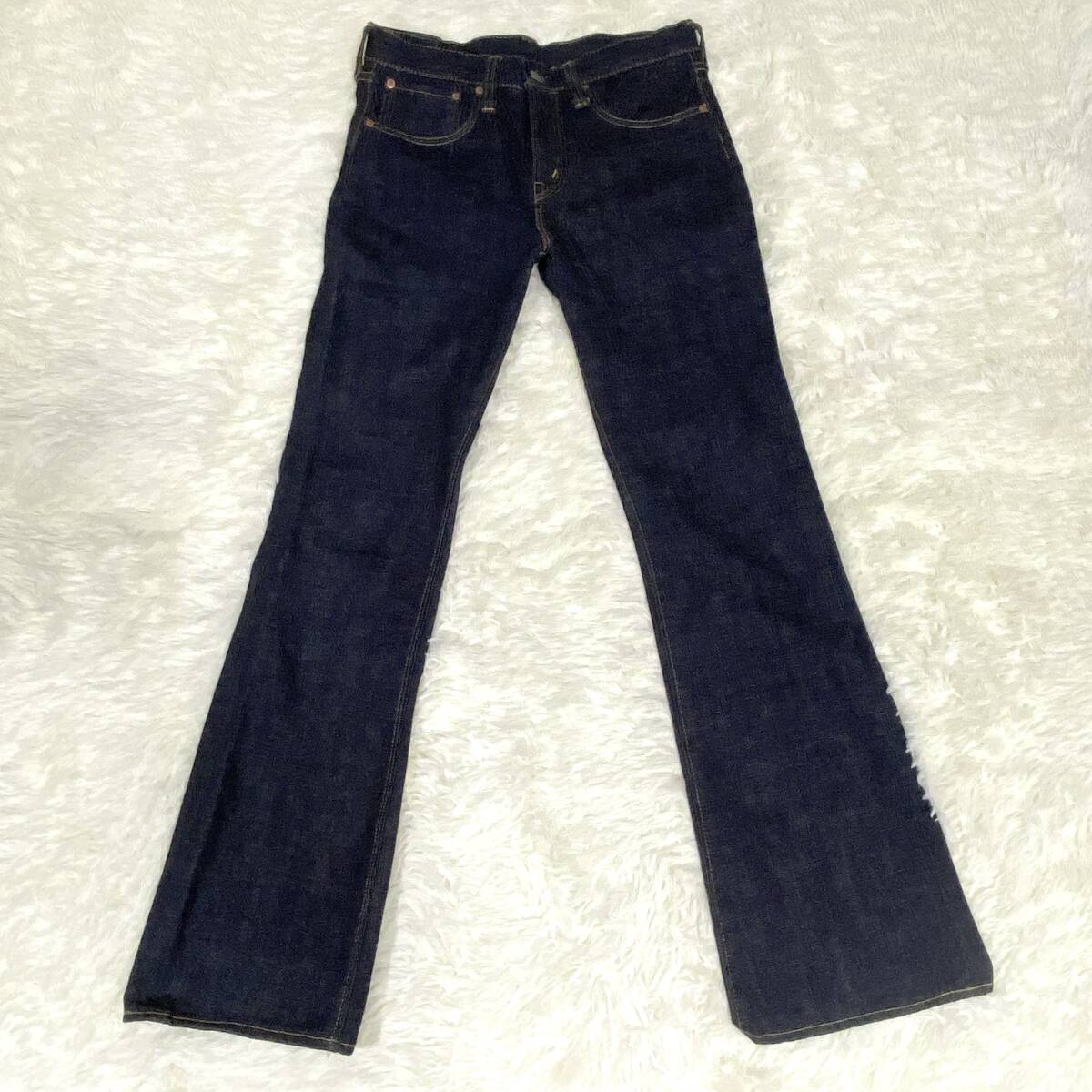 | 商品説明 | ご覧いただきまして誠にありがとうございます。 出品物の概要は以下の通りです。 ブランド名:シュガーケーン カラー:濃紺 サイズ:W31 実寸:ウエスト(平置き)37cm、股上26cm、わたり23cm、股下77cm、裾幅23cm ※多少の誤差はお許しください。 コンディション:USED品 |