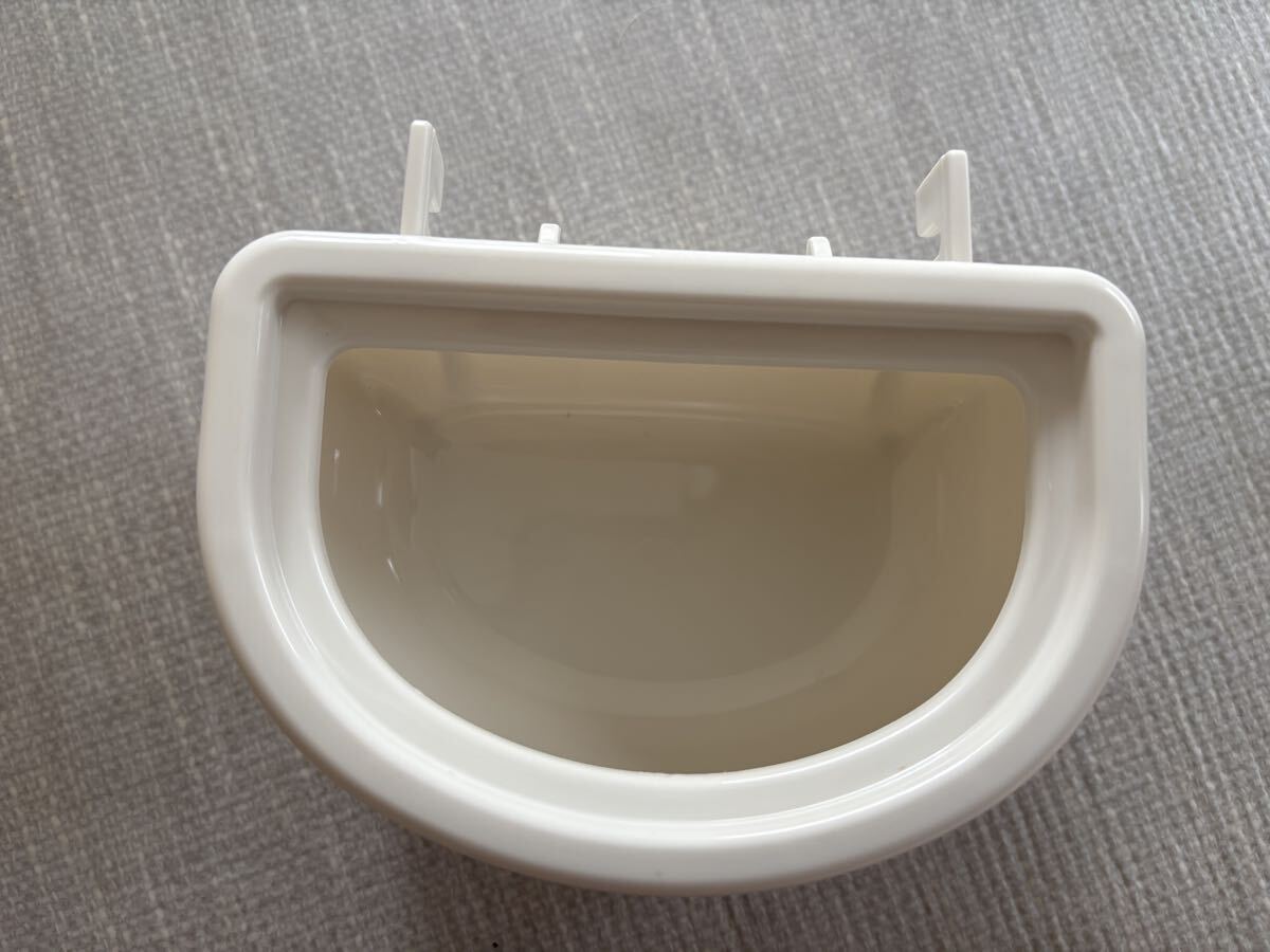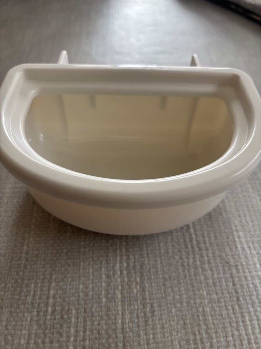 白いプラスチック製のハンギングフィーディングボウル。