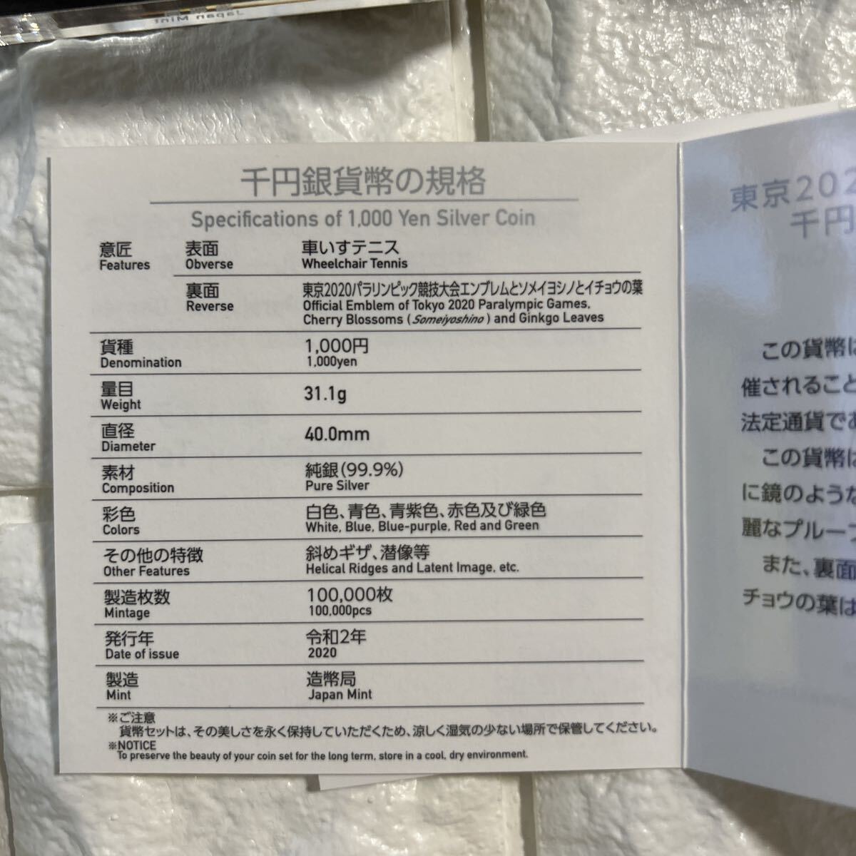 ☆ 純銀(99.9%)31.1g ☆東京2020 パラリンピック 競技大会記念 ☆ 千円銀貨幣プルーフ貨幣セット ☆ 車いすテニス ◆2セット◆ 記念硬貨 造幣局 銀貨